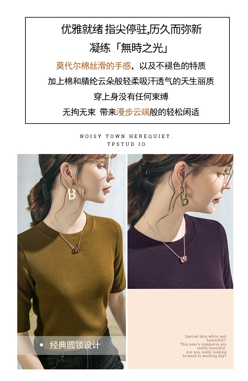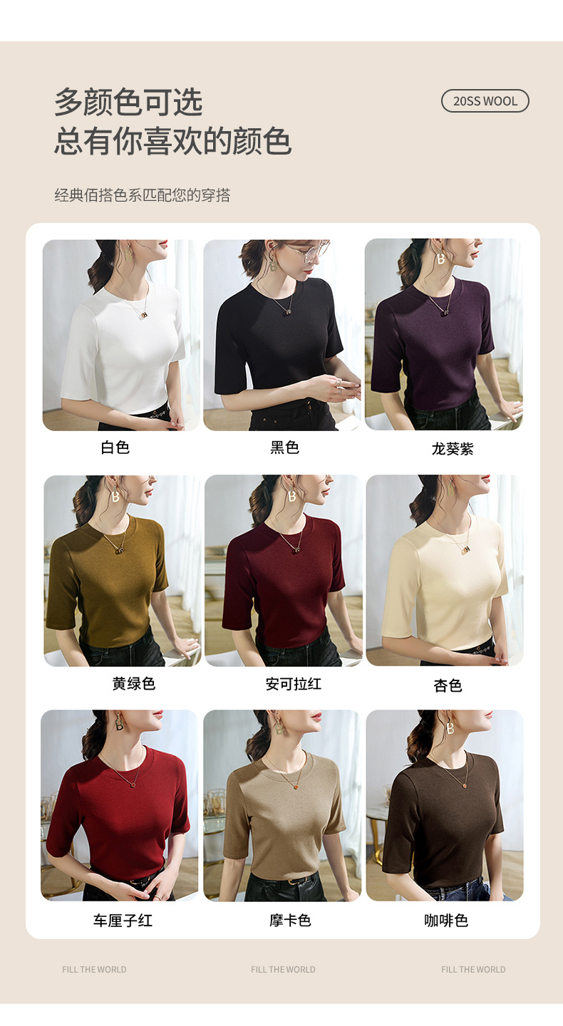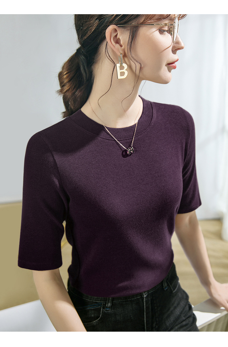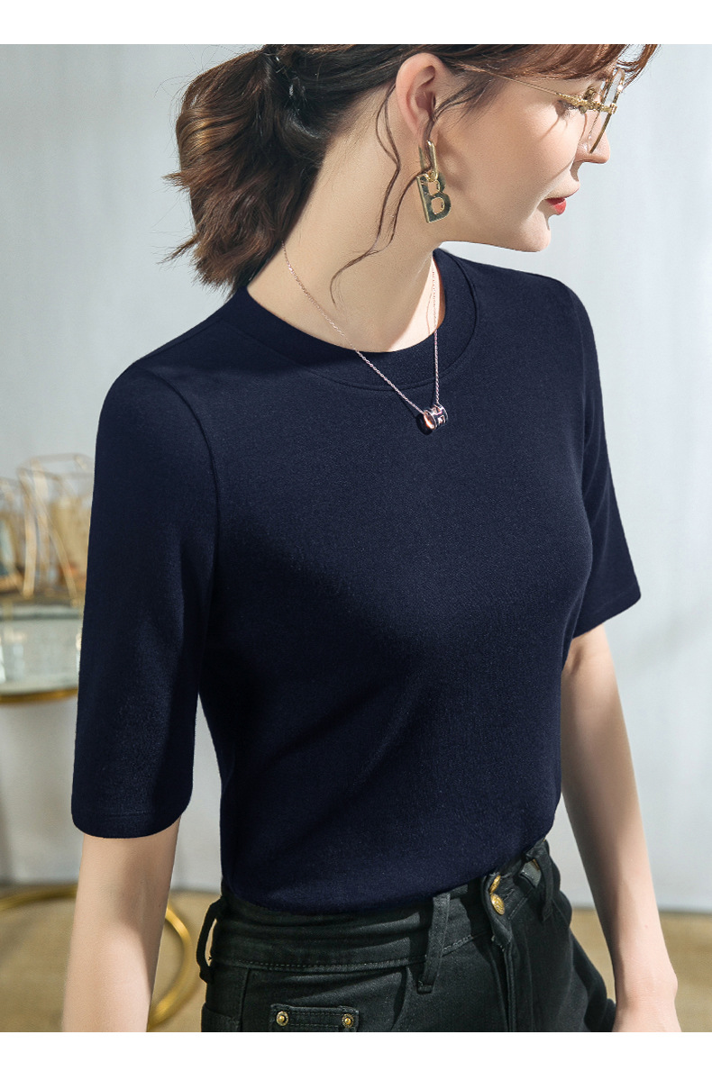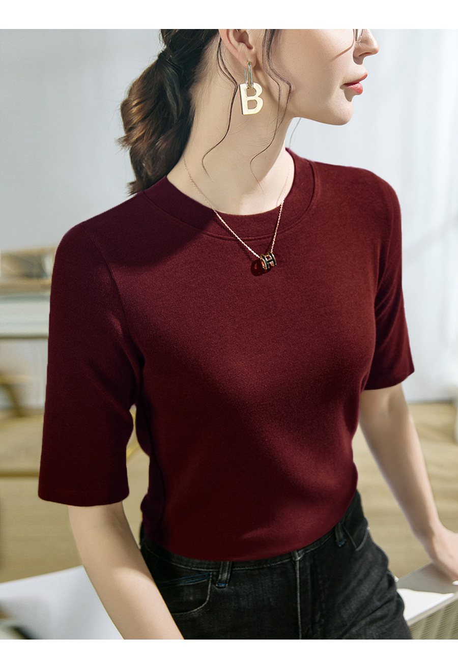 Top de algodón modal cuello redondo camisa de fondo de manga media para mujer primavera y verano 2025 nuevo estilo interior camiseta de manga de cinco puntos para mujer delgada