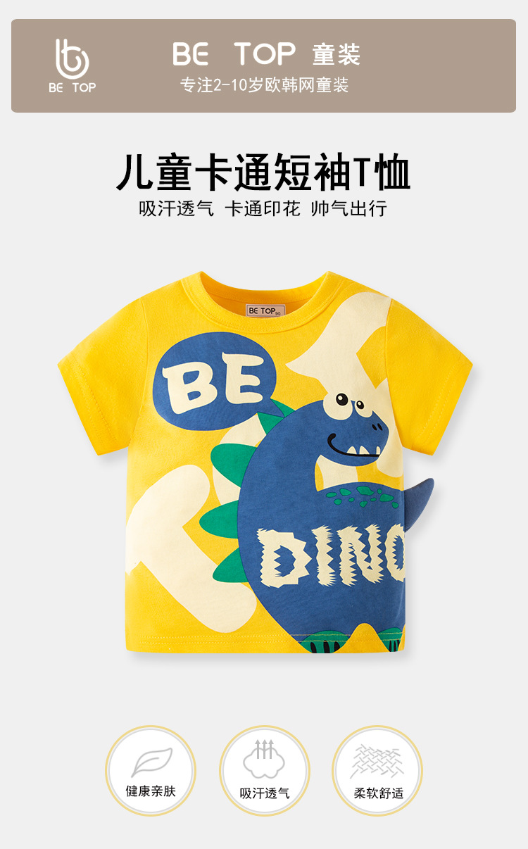 2024 nuevos niños de verano dinosaurio tridimensional de manga corta Camiseta de dibujos animados de los hombres semi-coreano ropa infantil al por mayor entrega de una sola pieza