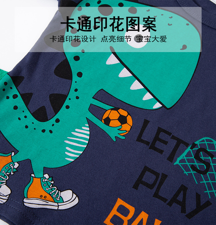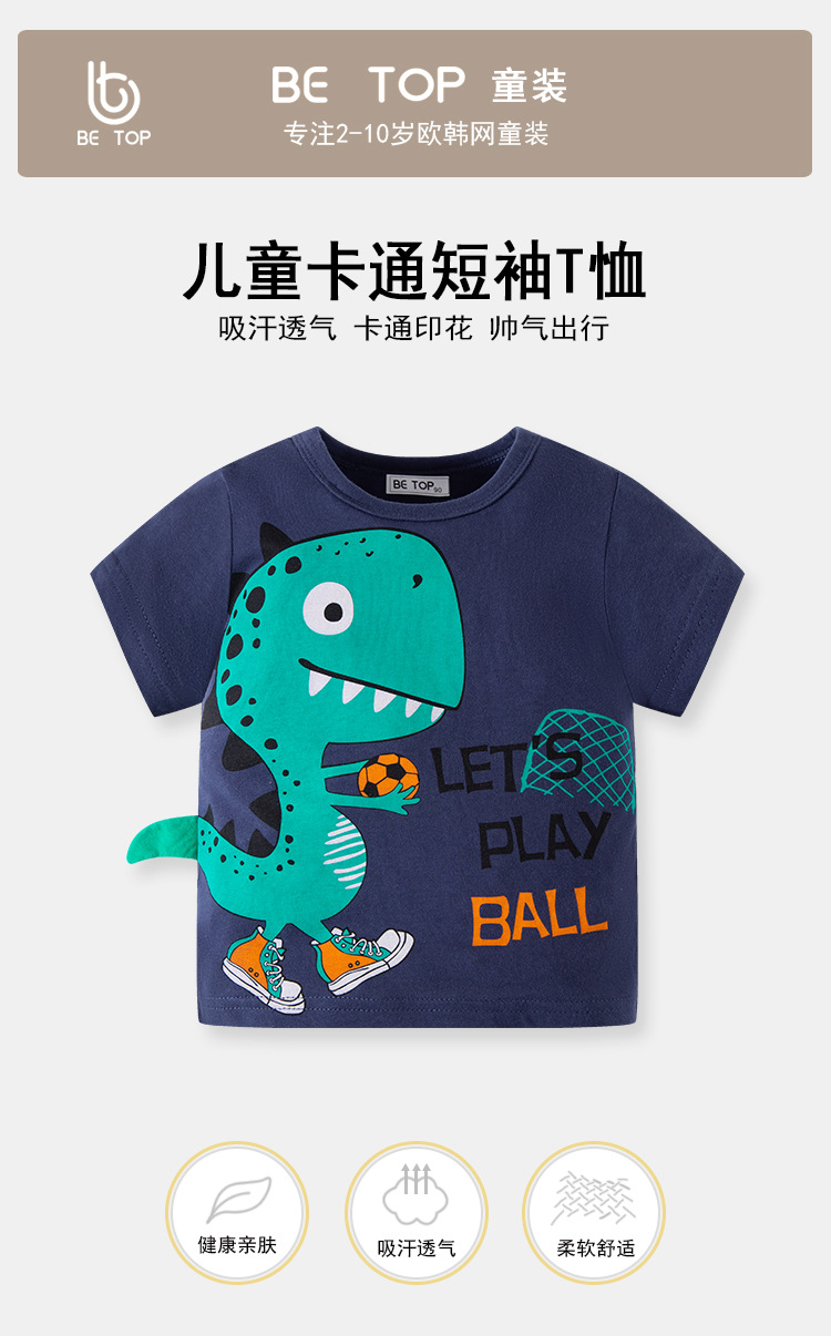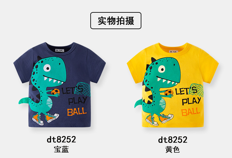 2024 Camiseta de manga corta de cuello redondo de algodón para niños camiseta de media manga de dinosaurio de verano para niños entrega de una pieza