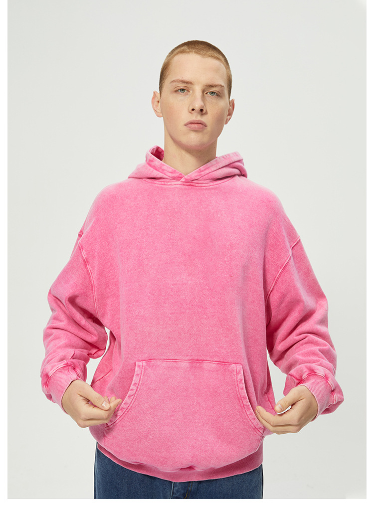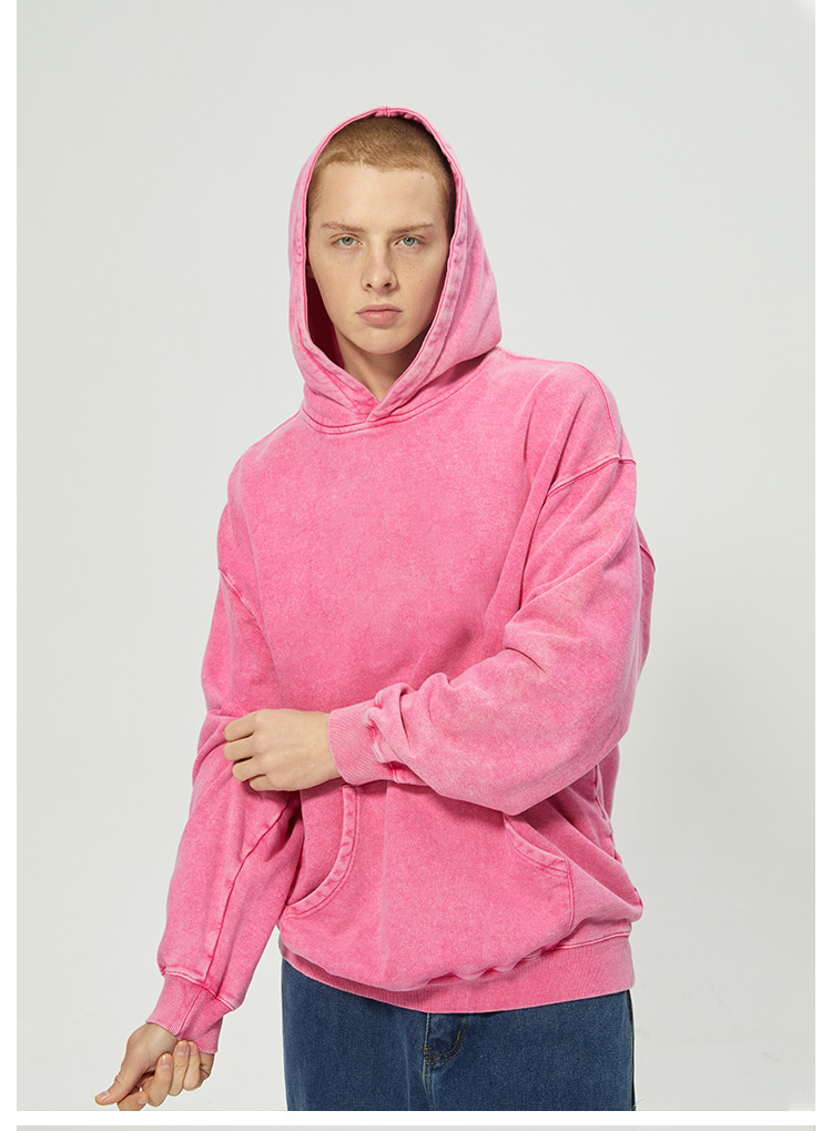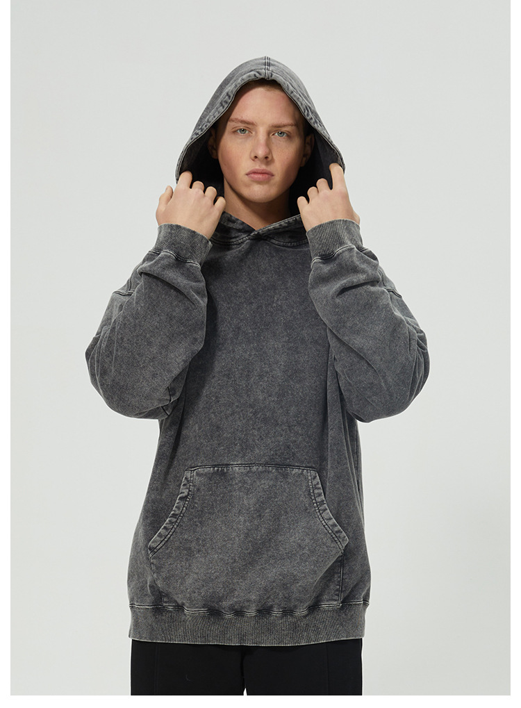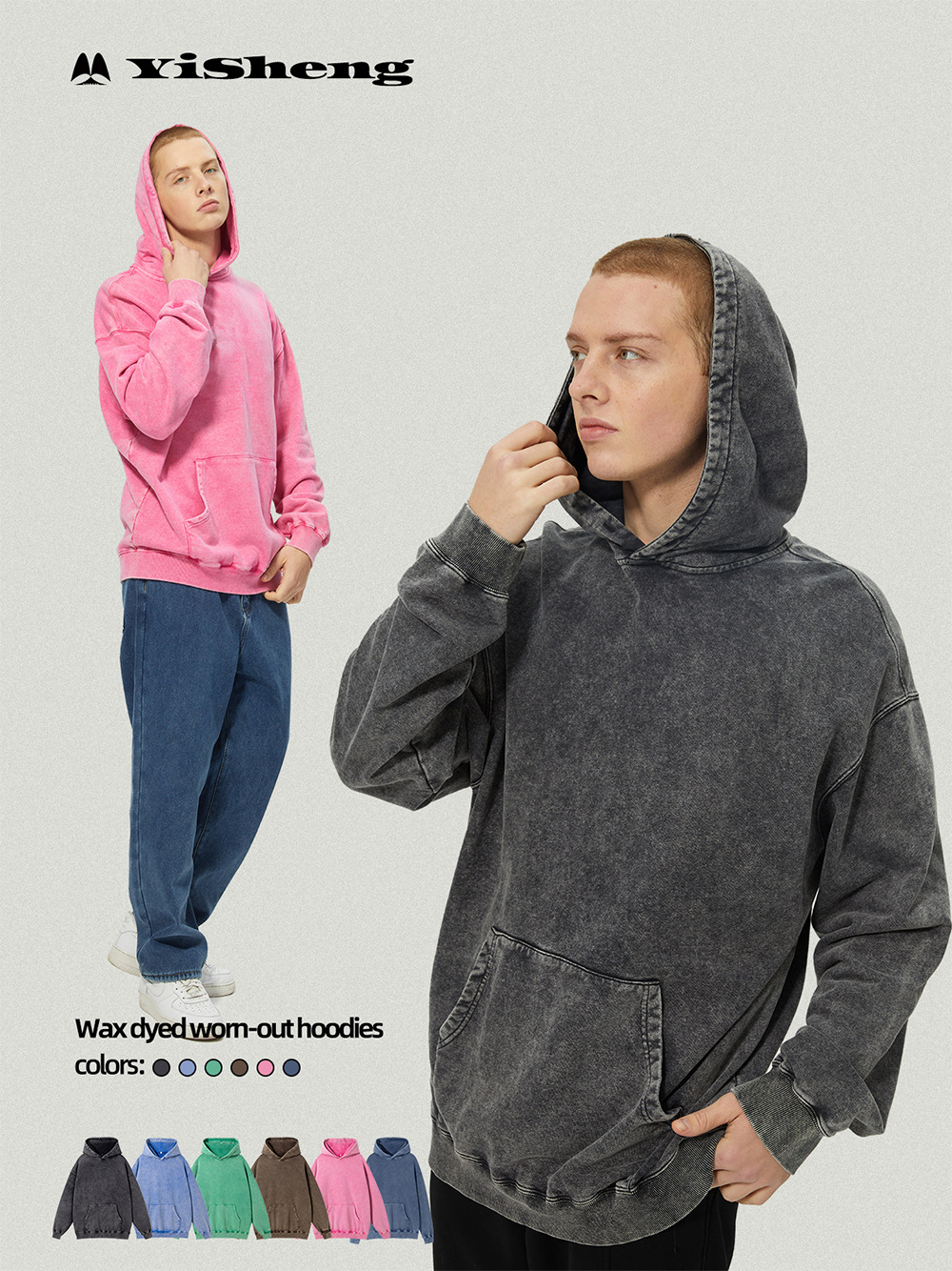 Sudadera Vintage de Algodón Puro Lavado, Estilo Retro Casual, Teñido con Cera de Copo de Nieve, Ropa para Hombre