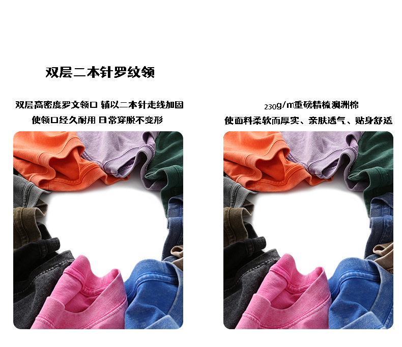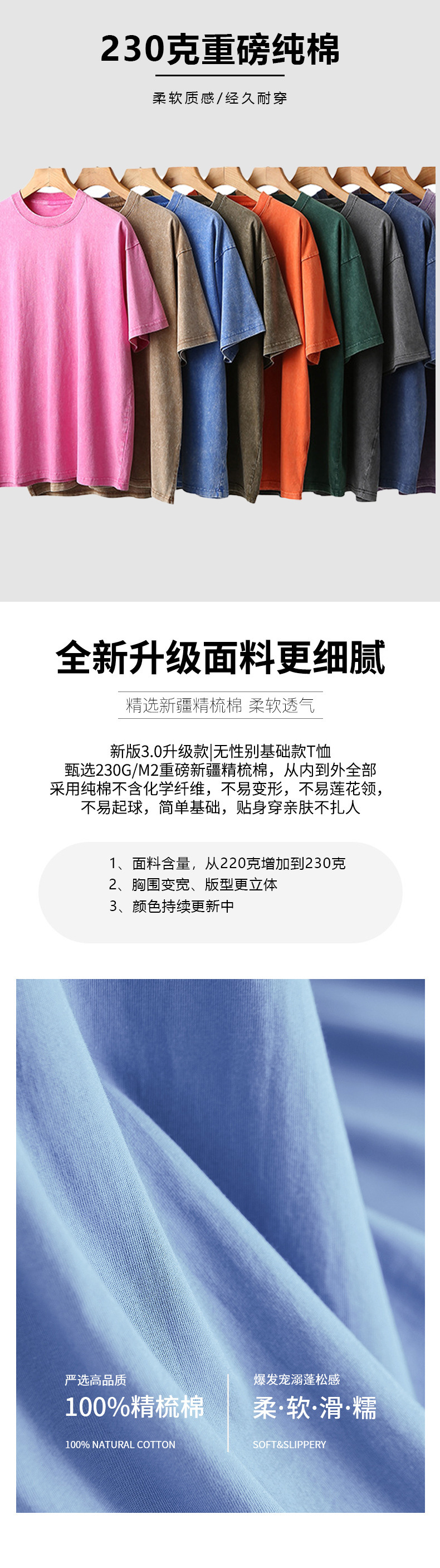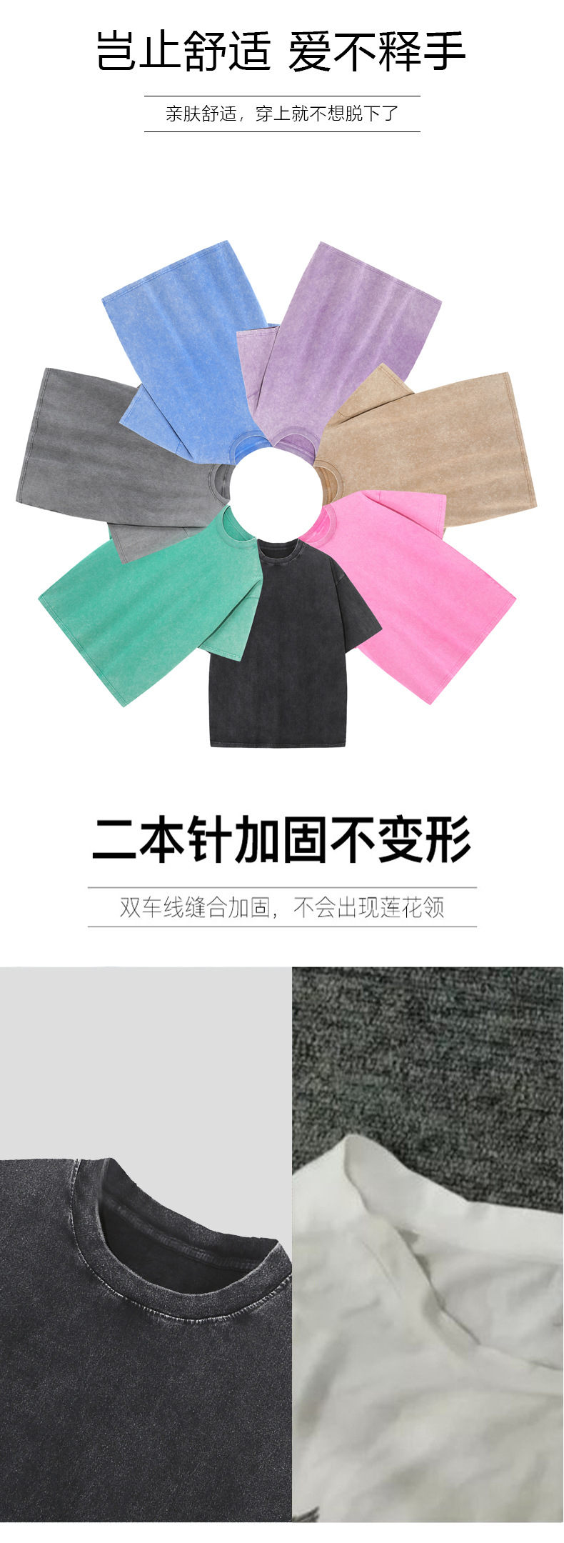 230g de algodón puro americano lavado camiseta apenada hombres y mujeres corto personalizado verano suelto ins marca de moda todo-Partido estilo de Hong Kong Hip Hop