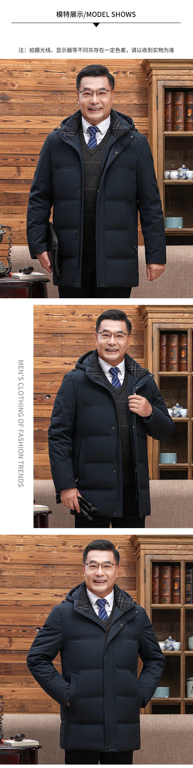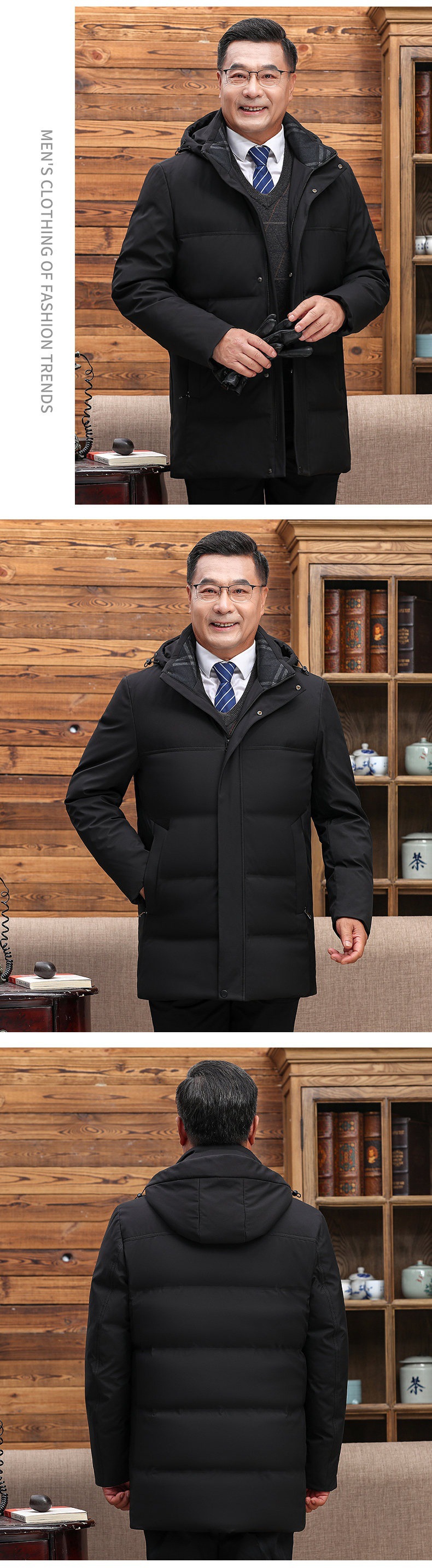 Popular empuje principal chaqueta de mediana edad y ancianos hombres engrosada con capucha papá desgaste invierno chaqueta de media longitud