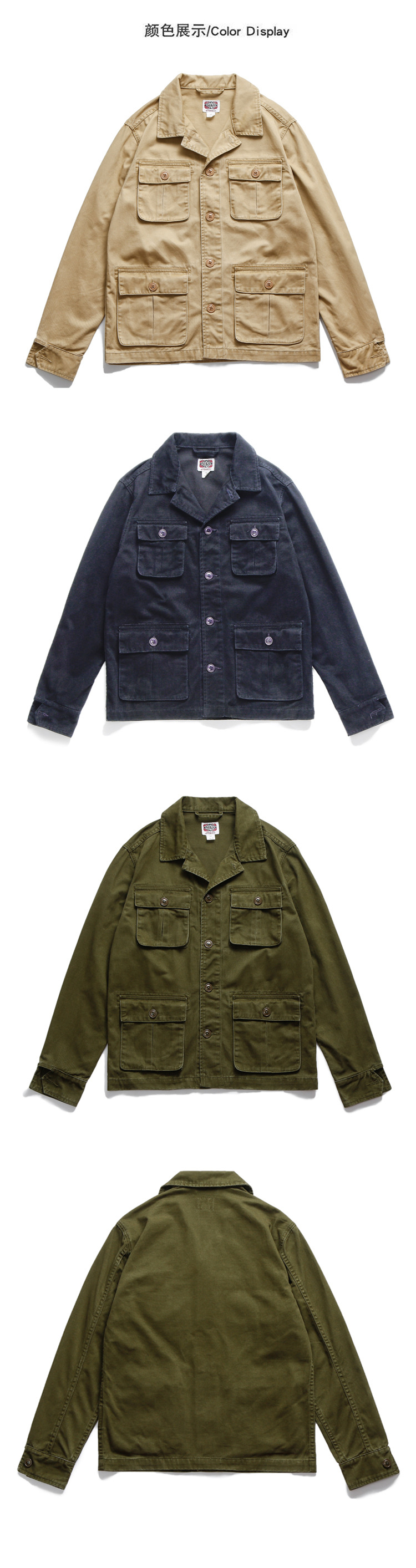 Ameikaji americano retro multi-Bolsillo de trabajo chaqueta hombres primavera y otoño suelta moda marca casual solapa chaqueta de caza