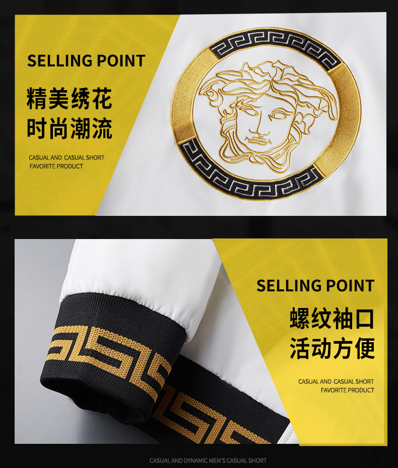 Grupo en vivo compra al por mayor Otoño e Invierno nueva chaqueta de los hombres forrada de lana engrosada 2075 belleza cabeza bordada chaqueta caliente