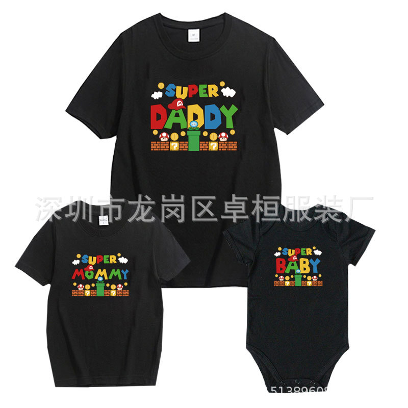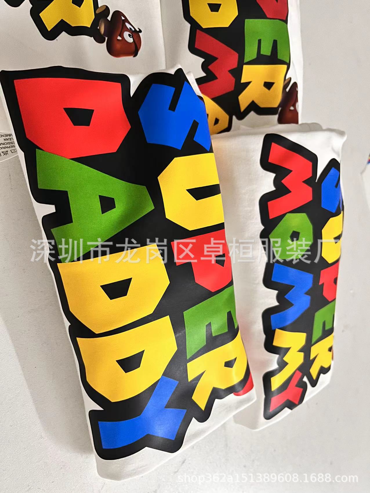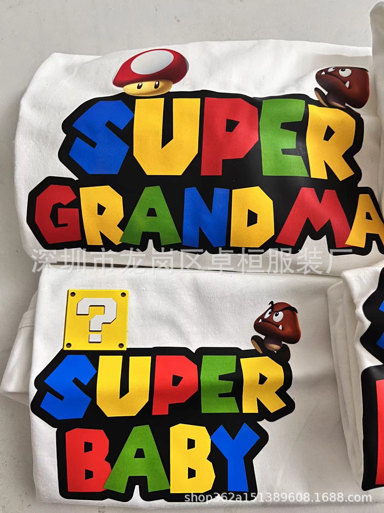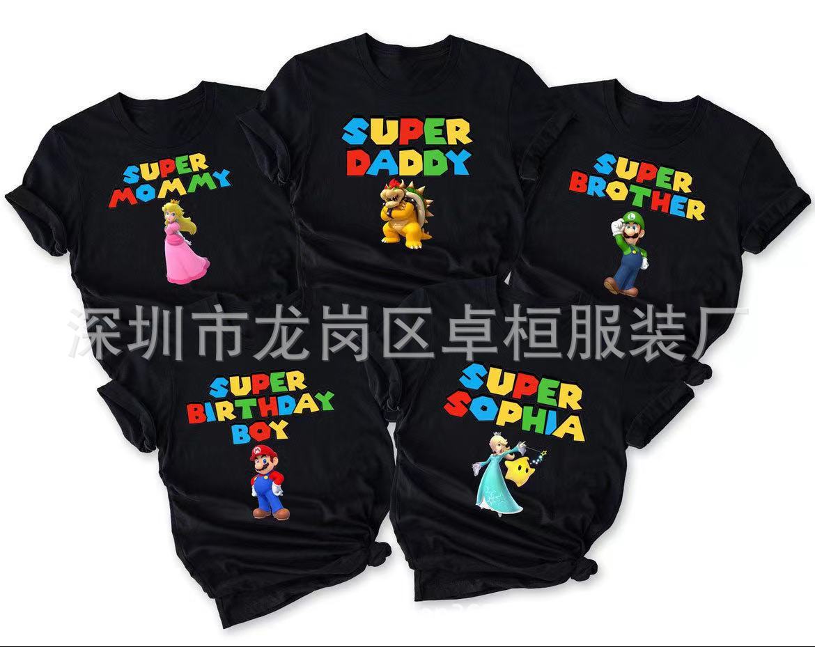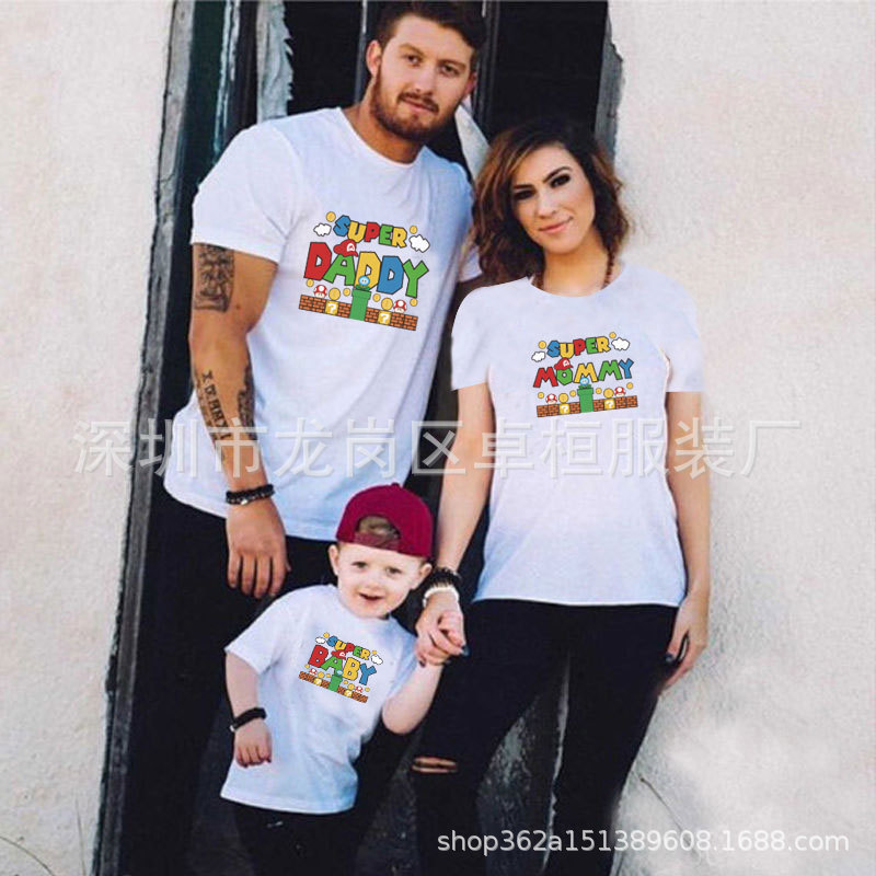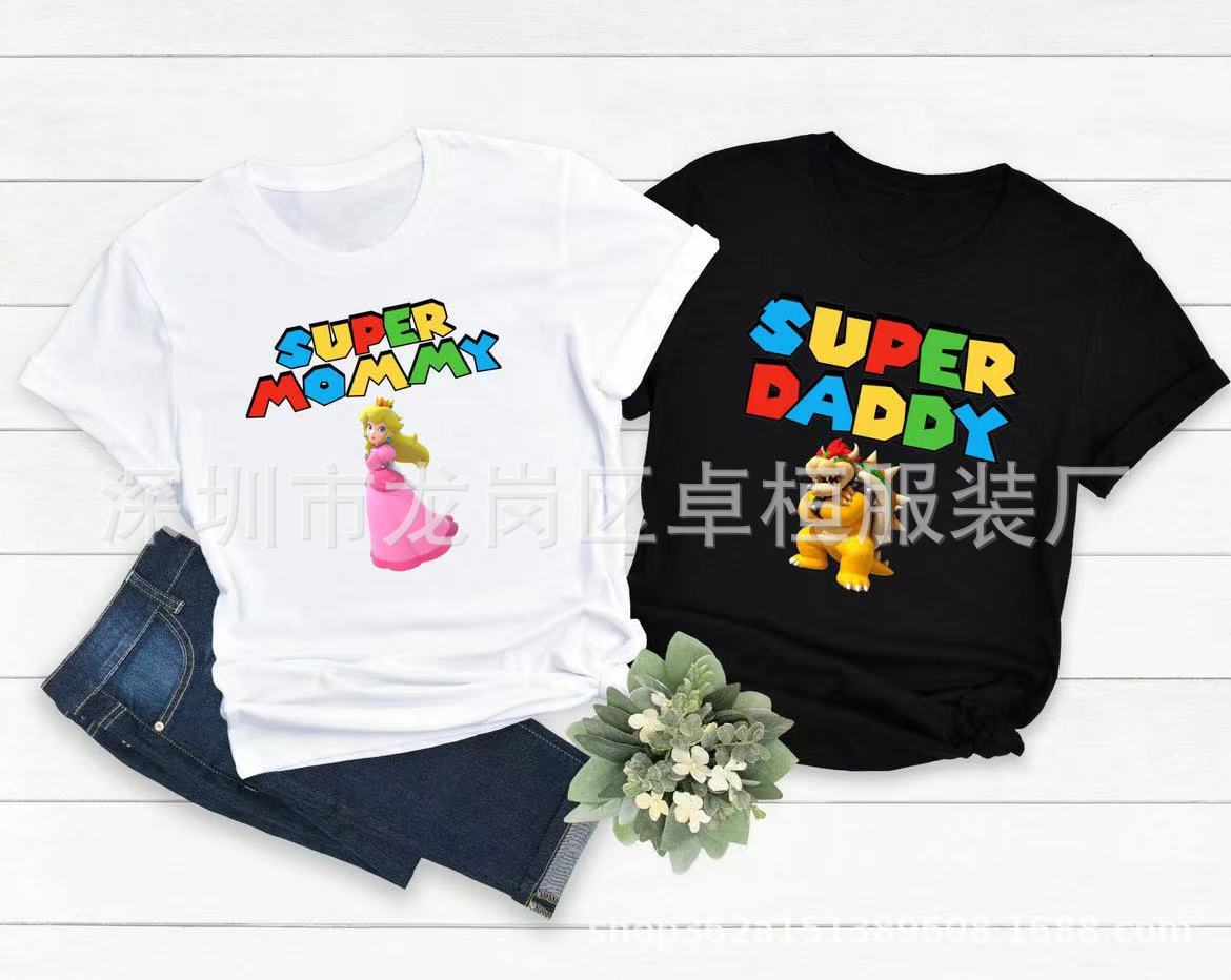 Moda de dibujos animados lindo manga corta hombres padre-niño ropa de clase camiseta suelta estilo coreano impreso Super Mary camiseta mujeres