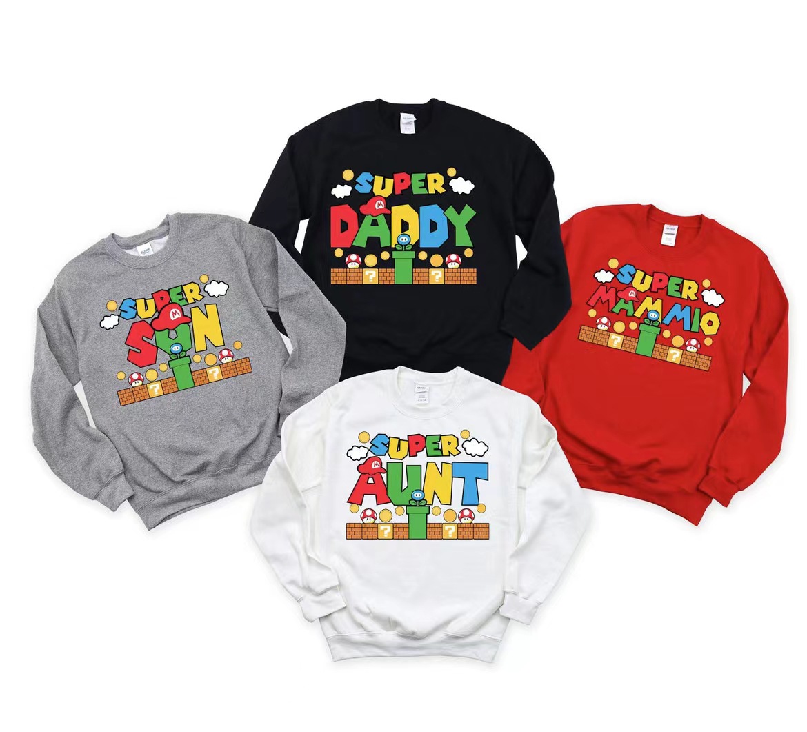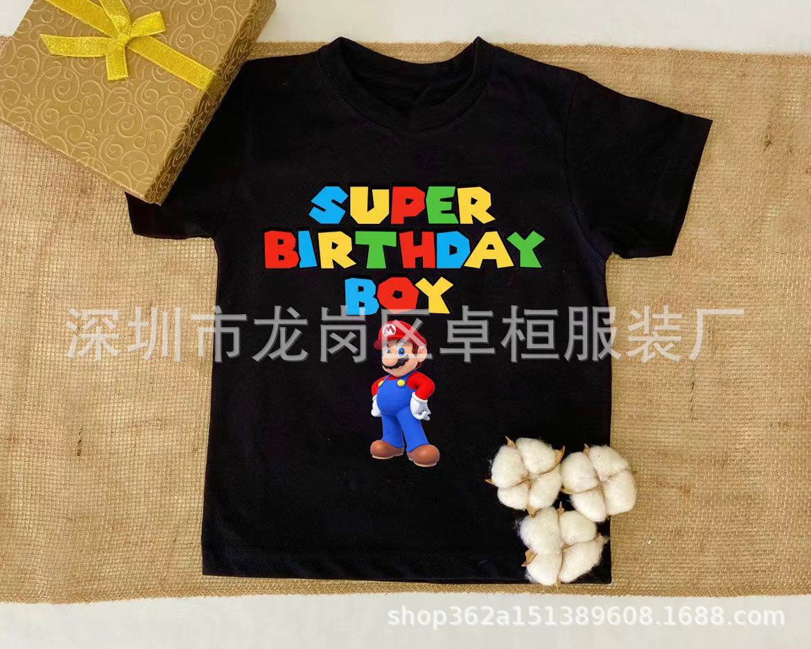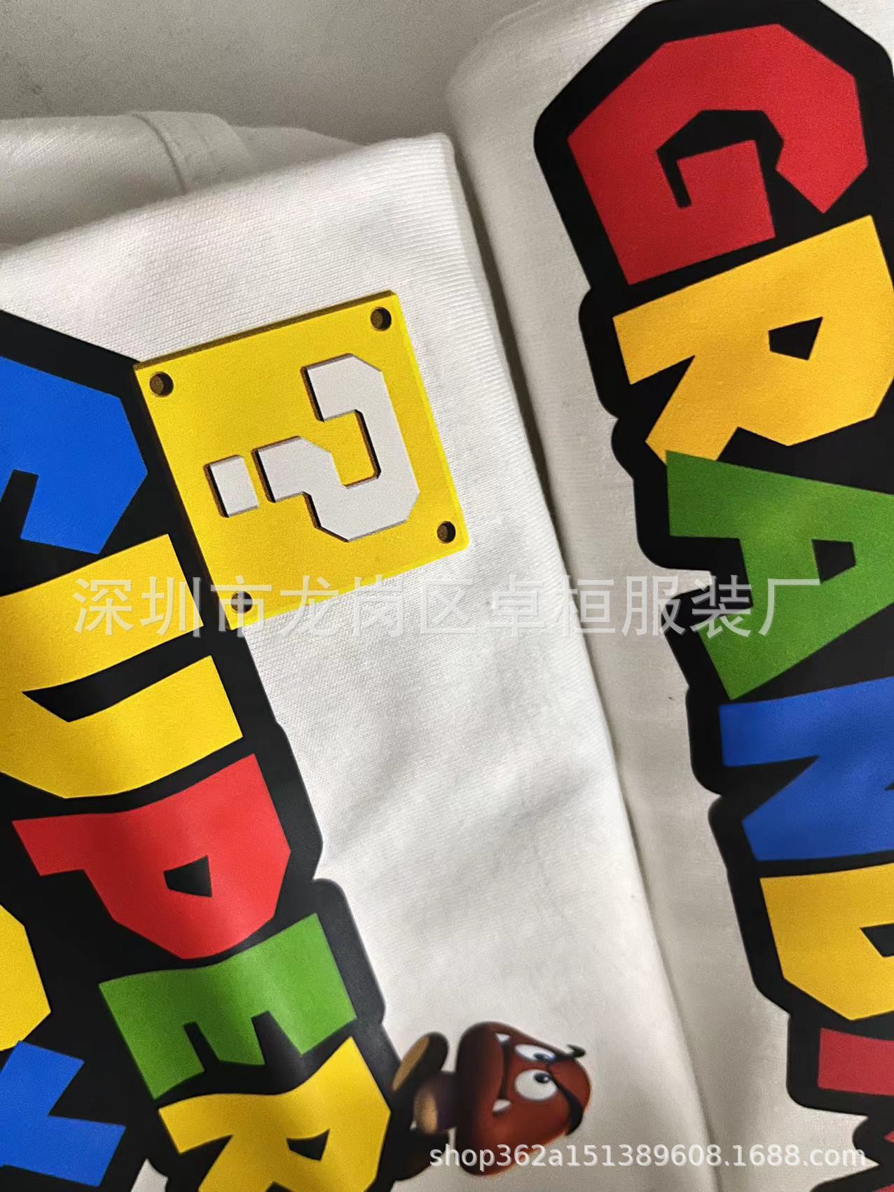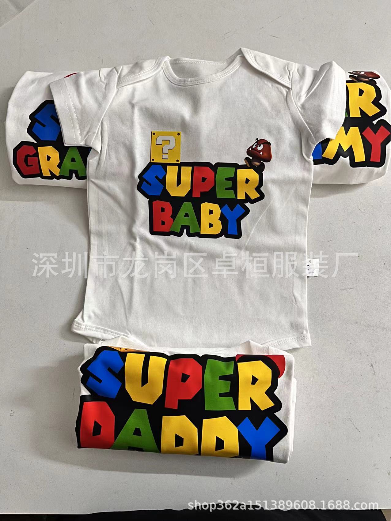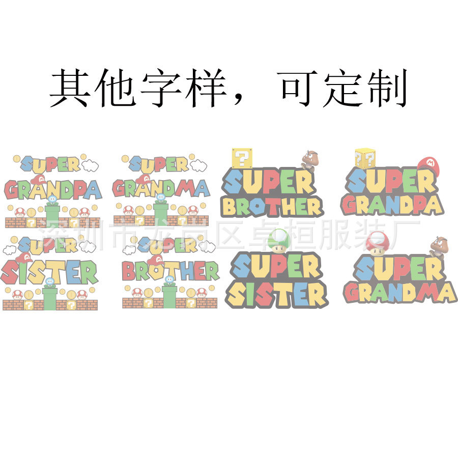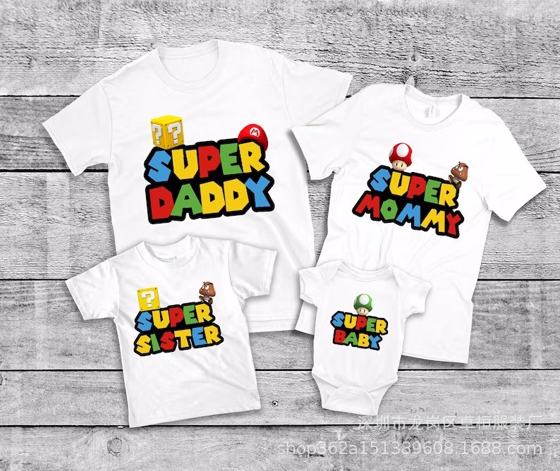 Moda de dibujos animados lindo manga corta hombres padre-niño ropa de clase camiseta suelta estilo coreano impreso Super Mary camiseta mujeres