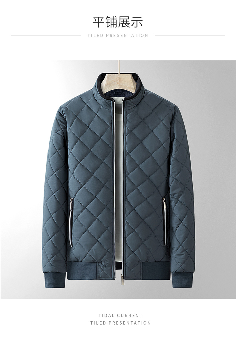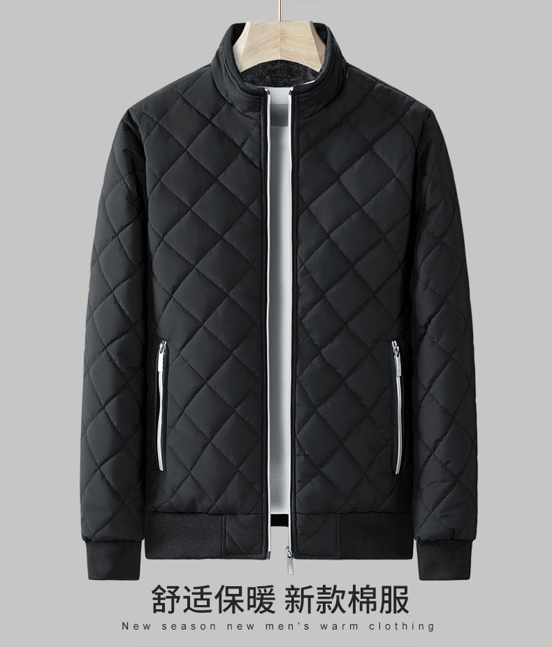 Abrigo de algodón popular transfronterizo para hombre, cuello alto, chaqueta con forro polar, abrigo de algodón a cuadros informal para jóvenes, chaqueta moderna a prueba de viento y cálida