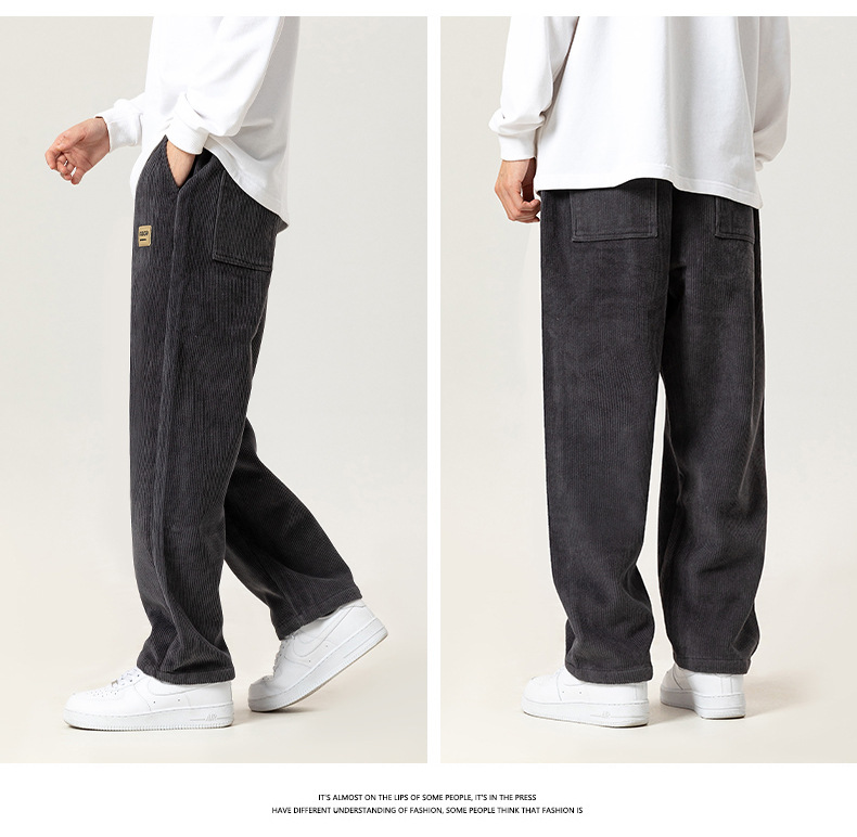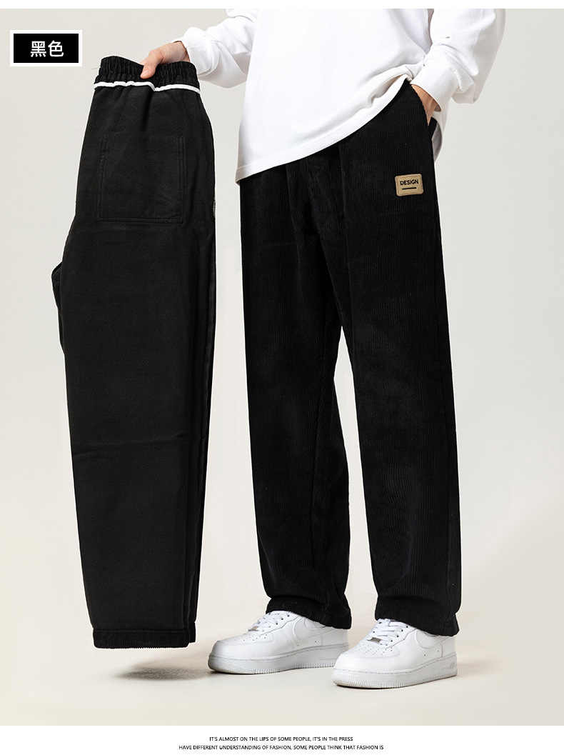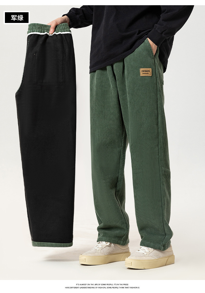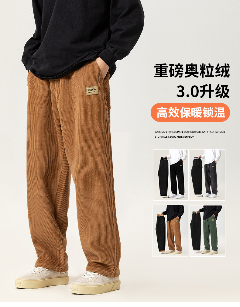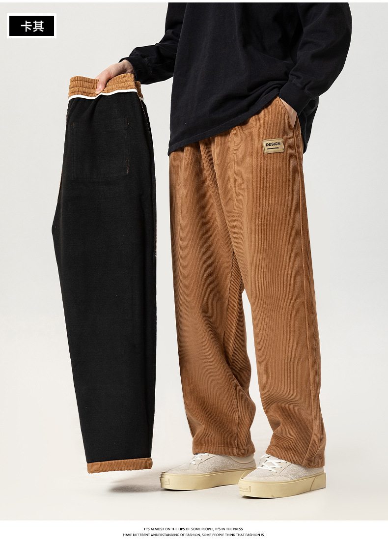Suministro exclusivo transfronterizo | Pantalones rectos de color sólido retro americanos para hombre, pantalones deportivos de pana holgados y anchos de estilo urbano, gruesos y cálidos.