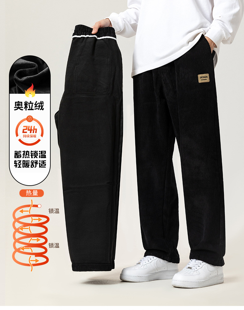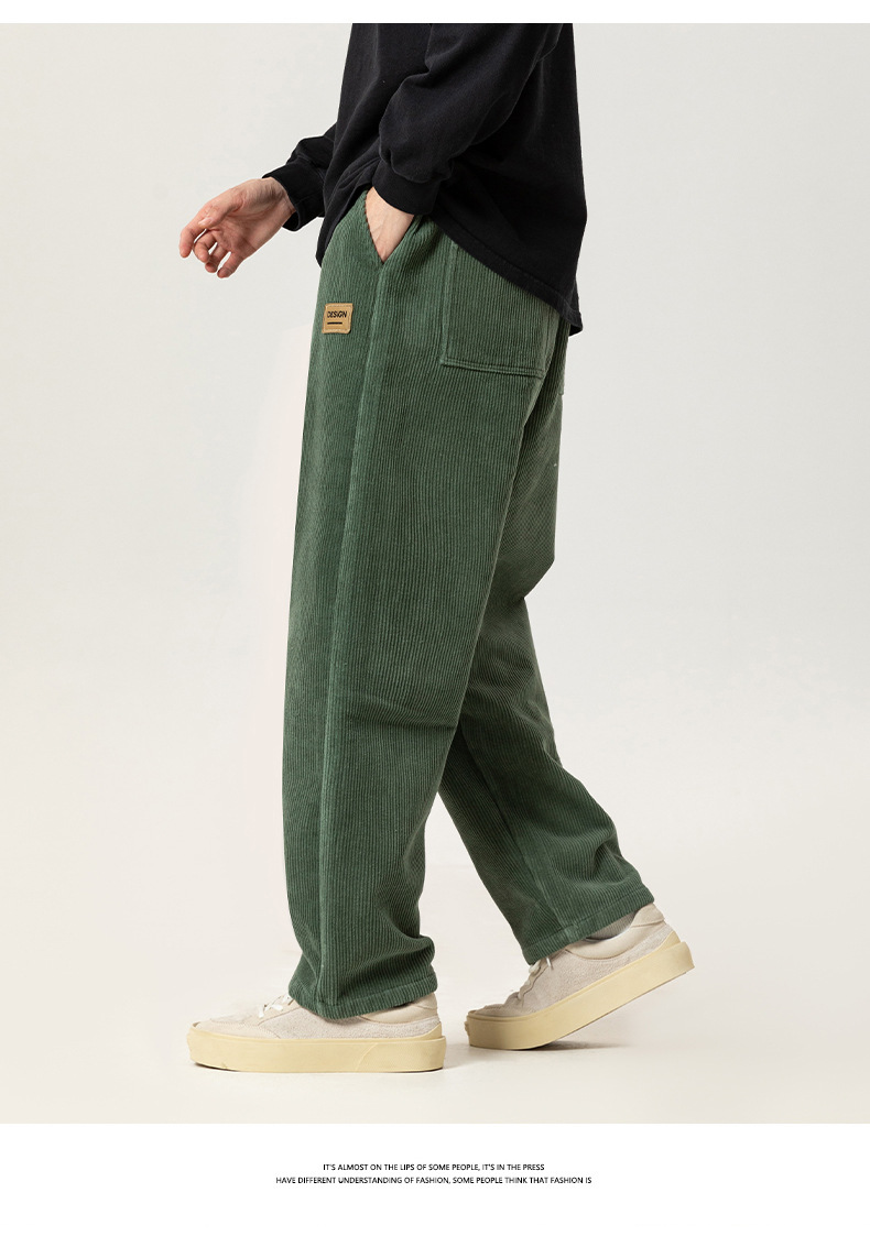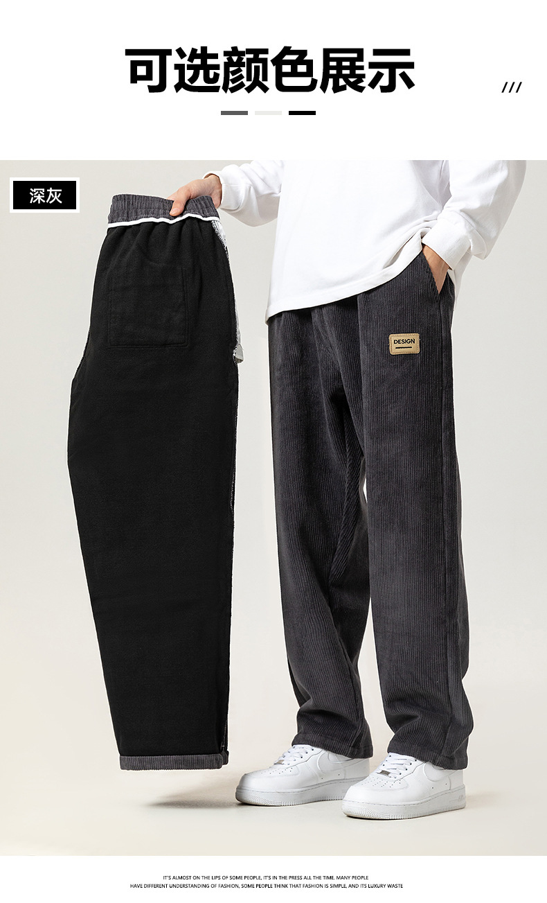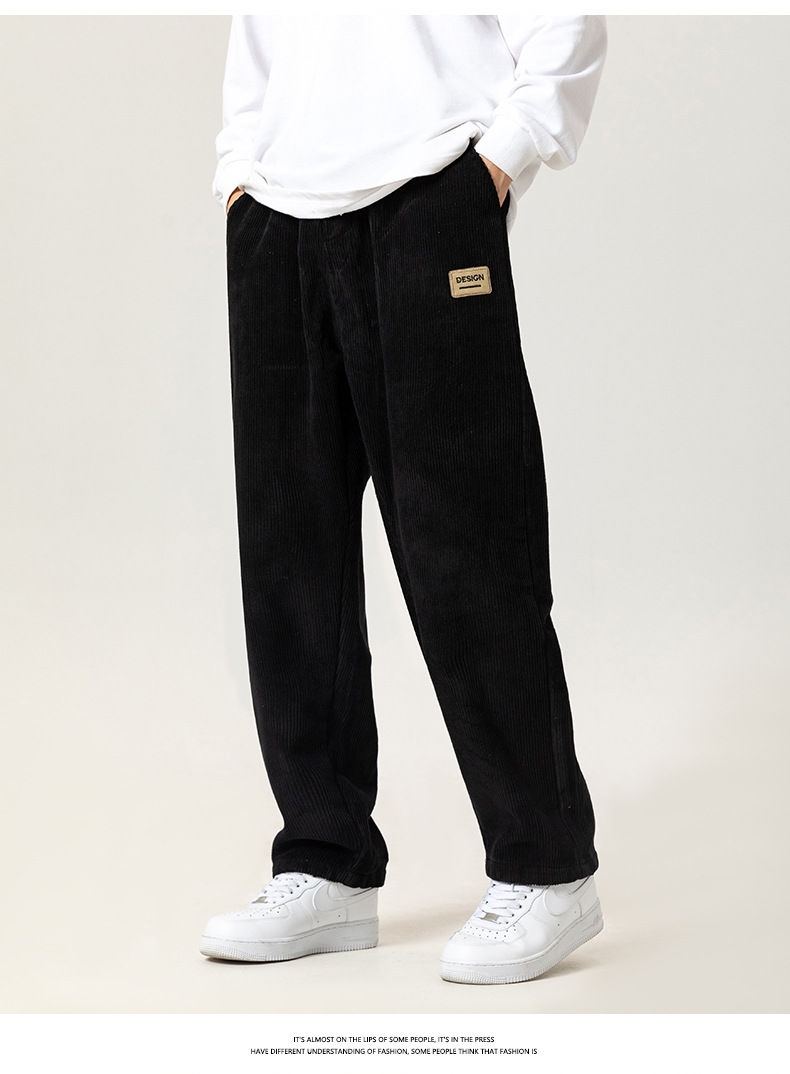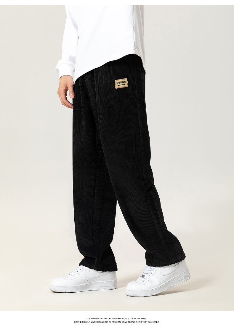Suministro exclusivo transfronterizo | Pantalones rectos de color sólido retro americanos para hombre, pantalones deportivos de pana holgados y anchos de estilo urbano, gruesos y cálidos.