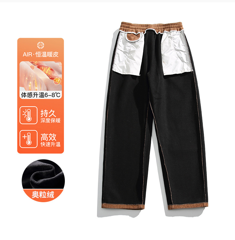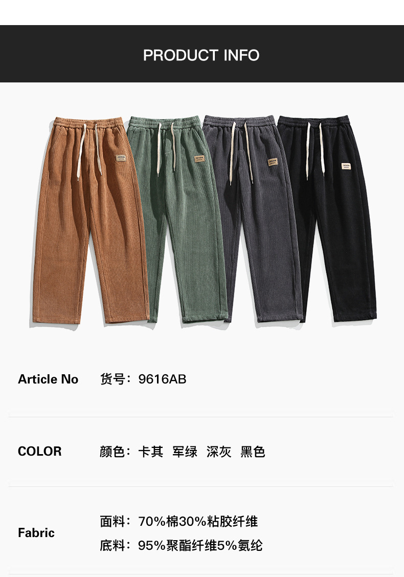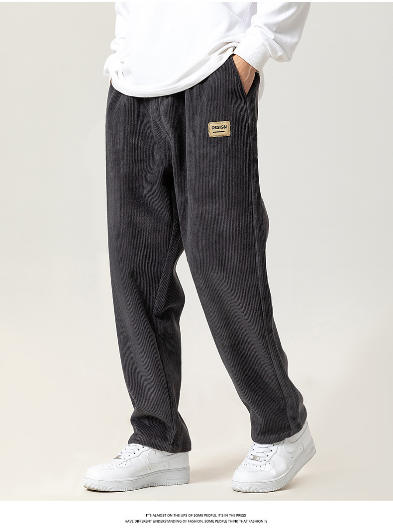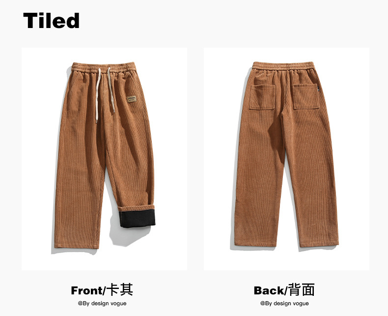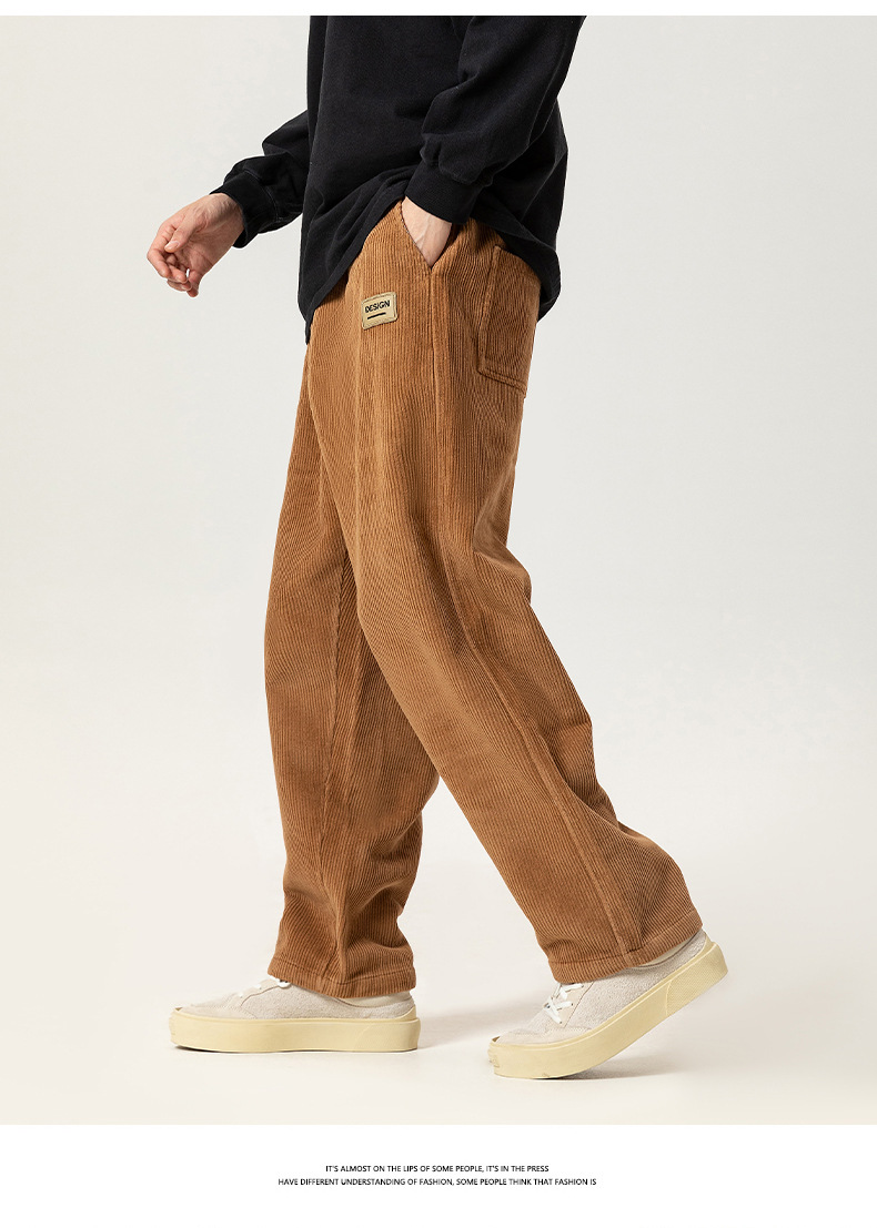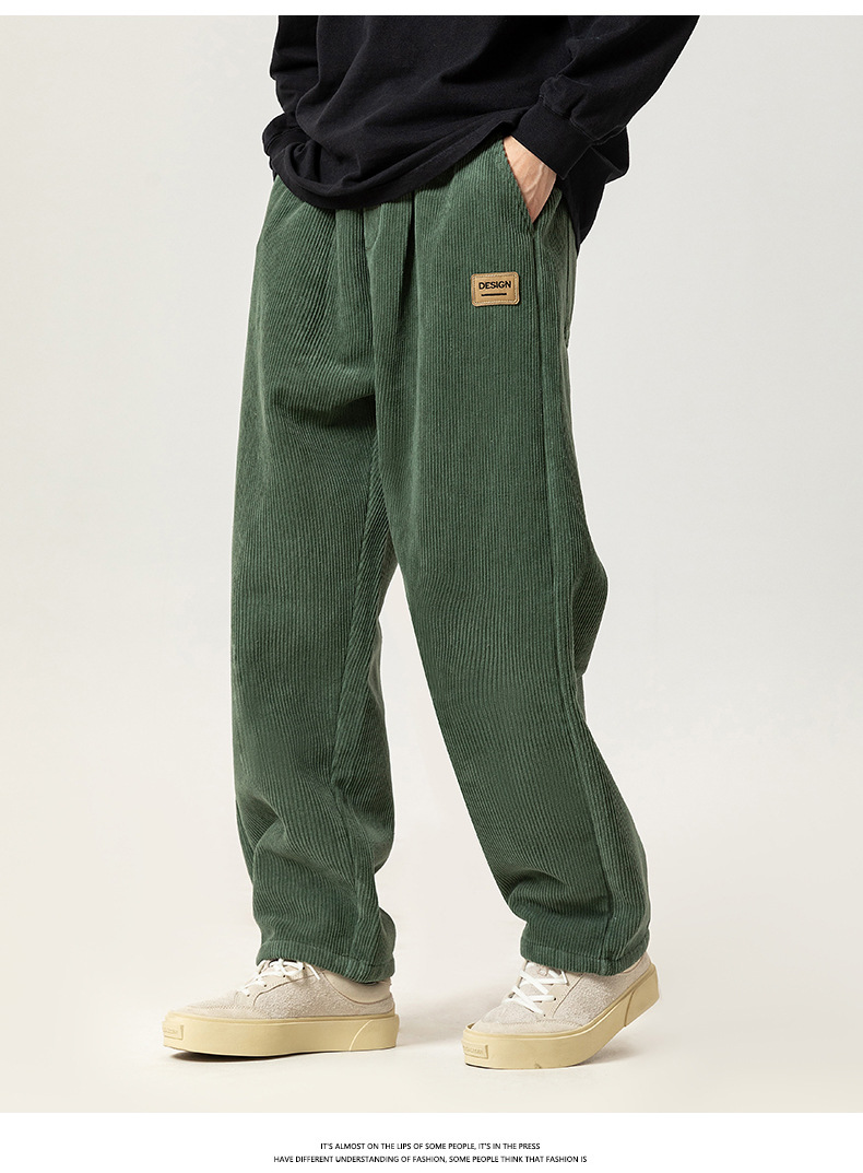 Suministro exclusivo transfronterizo | Pantalones rectos de color sólido retro americanos para hombre, pantalones deportivos de pana holgados y anchos de estilo urbano, gruesos y cálidos.