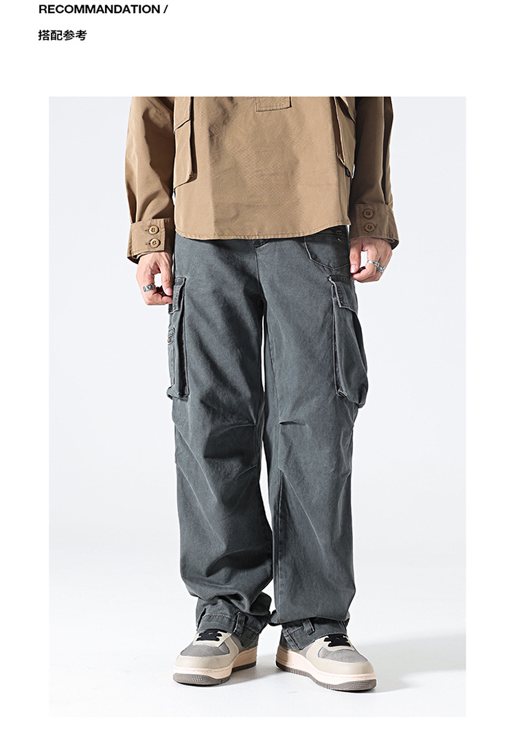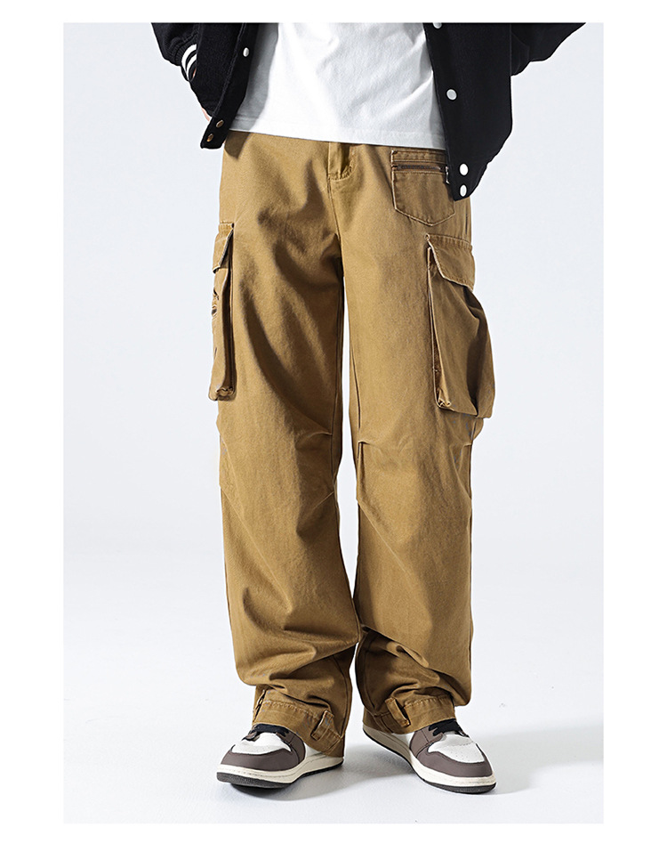 Xxbro mono americano de calle para hombre pantalones de pierna recta con múltiples bolsillos al aire libre pantalones casuales sueltos de moda ins