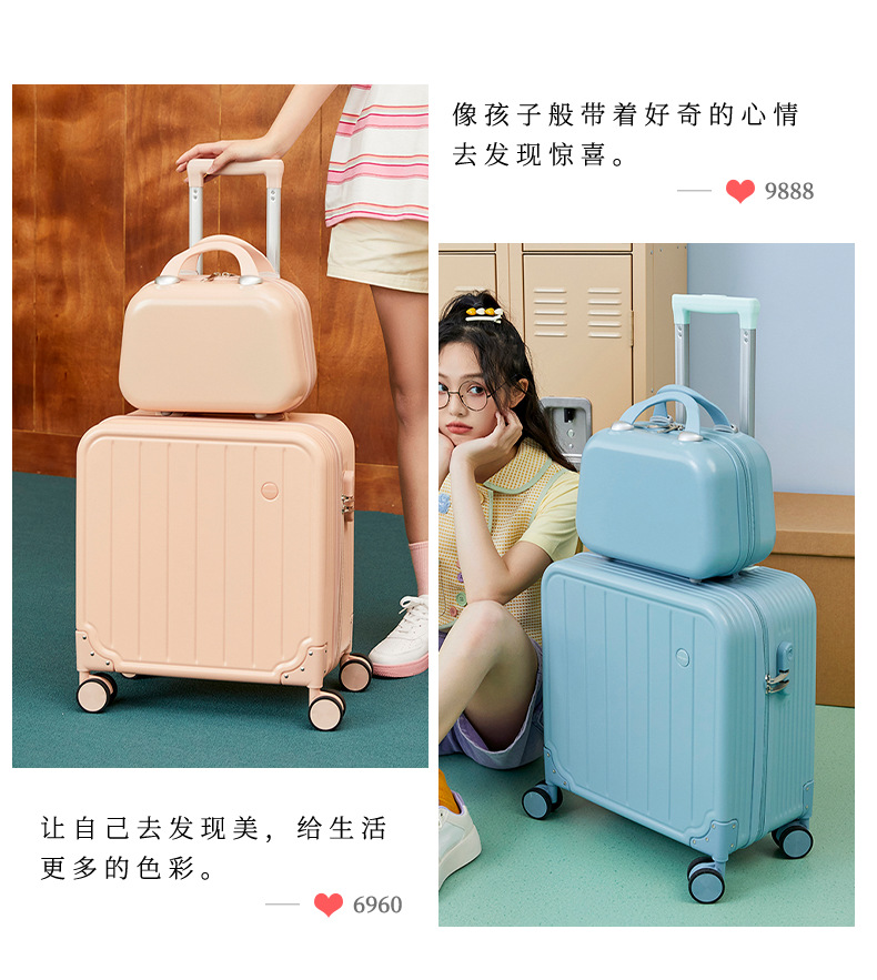 2024 nuevo maleta pequeña maleta de viaje para estudiantes de 20 pulgadas de alto valor rueda universal caja de trolley silenciosa al por mayor