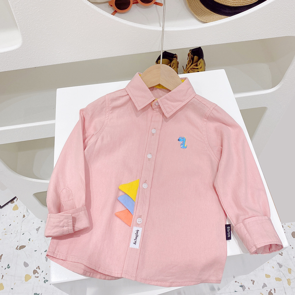 Camisa de manga larga de color sólido para niños 2023 primavera nuevos niños medianos y grandes estilo coreano ropa para niños bebé primavera y otoño camisa moda para niños