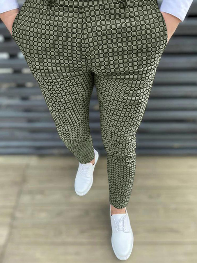 2025 Europa y Estados Unidos, primavera y otoño transfronterizos, nuevos hombres, impresión digital, moda casual, pantalones de lápiz de cintura media, delgado, tendencia larga