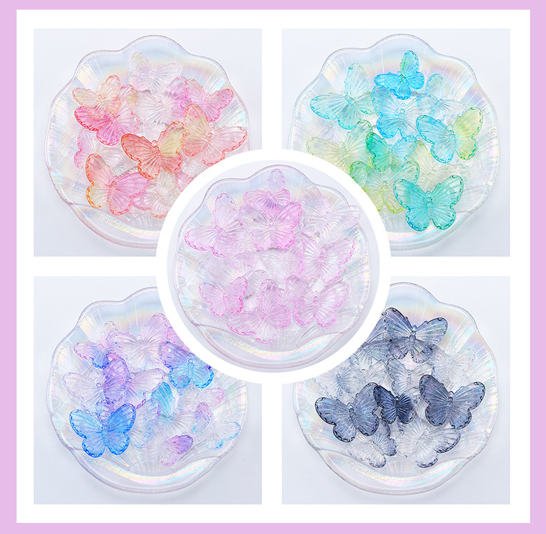 Gradiente mariposa mezclado transparente color DIY crema pegamento teléfono caso tocado colgante horquilla joyería resina accesorios al por mayor