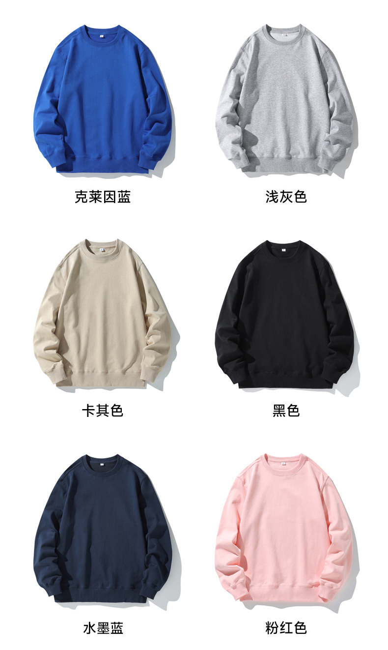 320g hombro Terry cuello redondo suéter de algodón puro clase uniforme ropa de trabajo tablero de la Luz color sólido impreso logotipo bordado patrón de pulverización directa