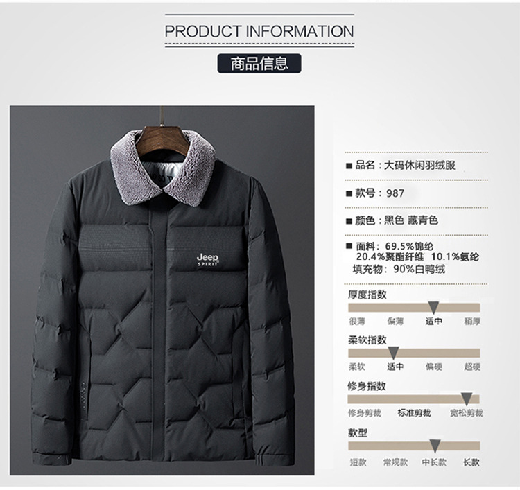 JEEP SPIRIT hombres de invierno abajo chaqueta caliente al aire libre engrosada suelta más tamaño pato blanco abajo de longitud media