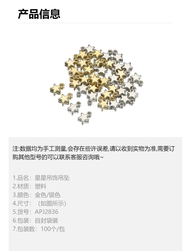 CCB estrella encanto oro plateado estrella de cinco puntas plástico ABS colgante DIY pulsera collar Ropa Accesorios de la joyería