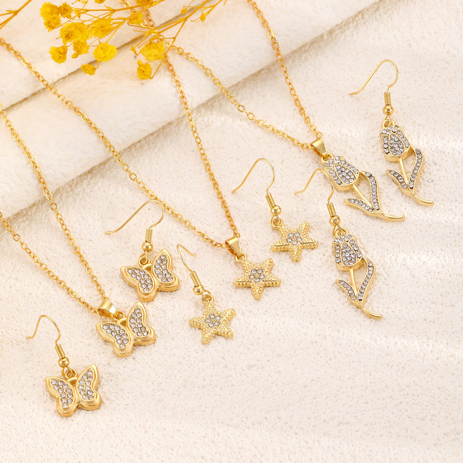 Transfronterizo europeo y americano Venta caliente joyería traje personalidad femenina diamante aleación corona mariposa collar pendientes traje ins moda