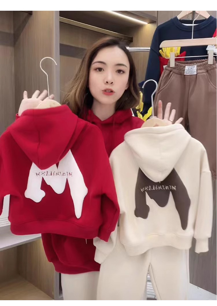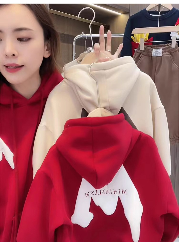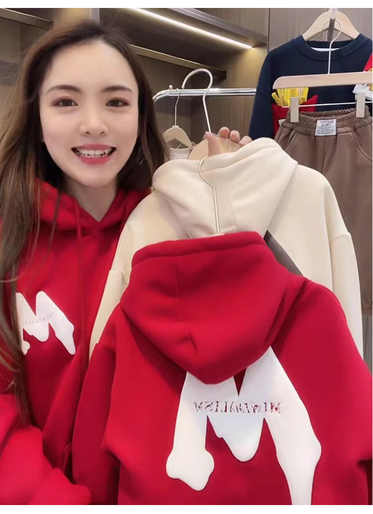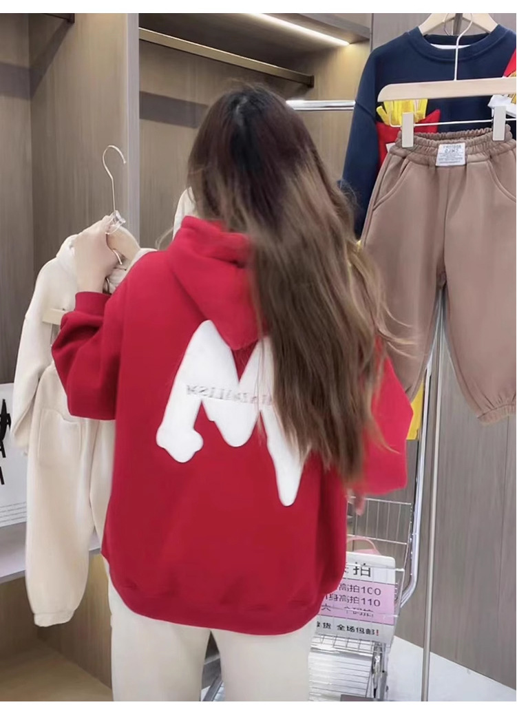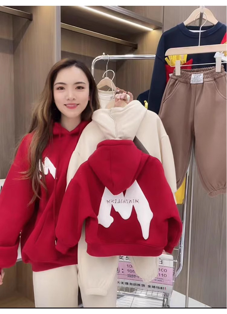 2023 nuevo rojo padre-hijo desgaste Otoño e Invierno suéter una tres boca cuatro boca desgaste todo a juego con capucha completa decoración del hogar