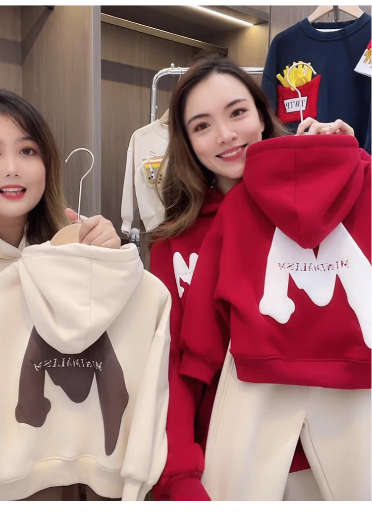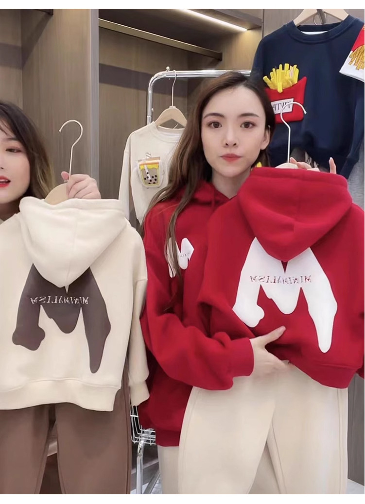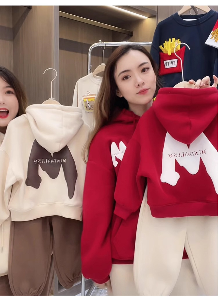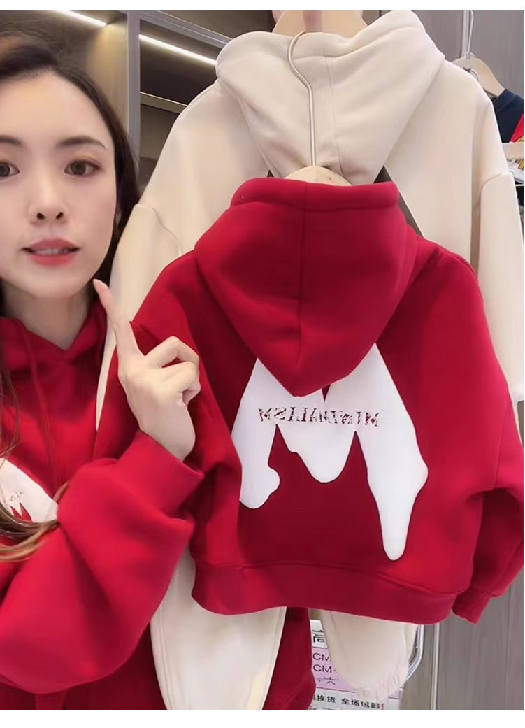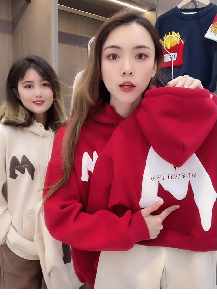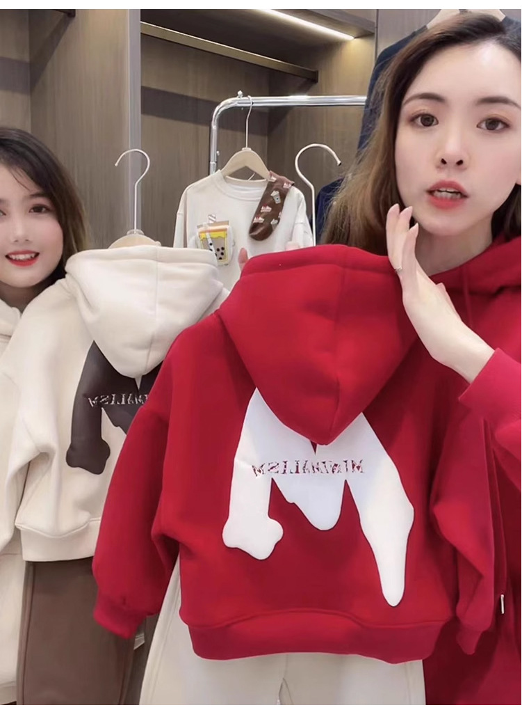 2023 nuevo rojo padre-hijo desgaste Otoño e Invierno suéter una tres boca cuatro boca desgaste todo a juego con capucha completa decoración del hogar