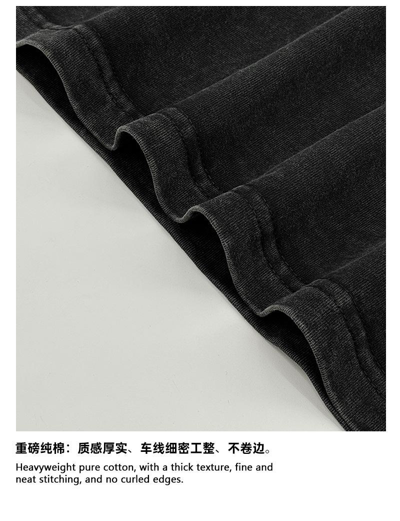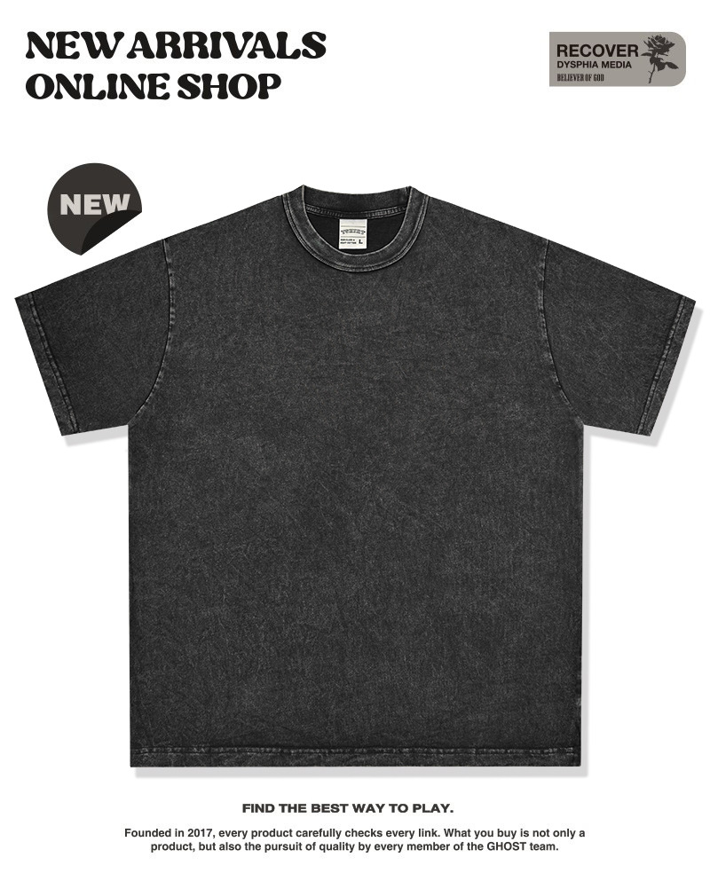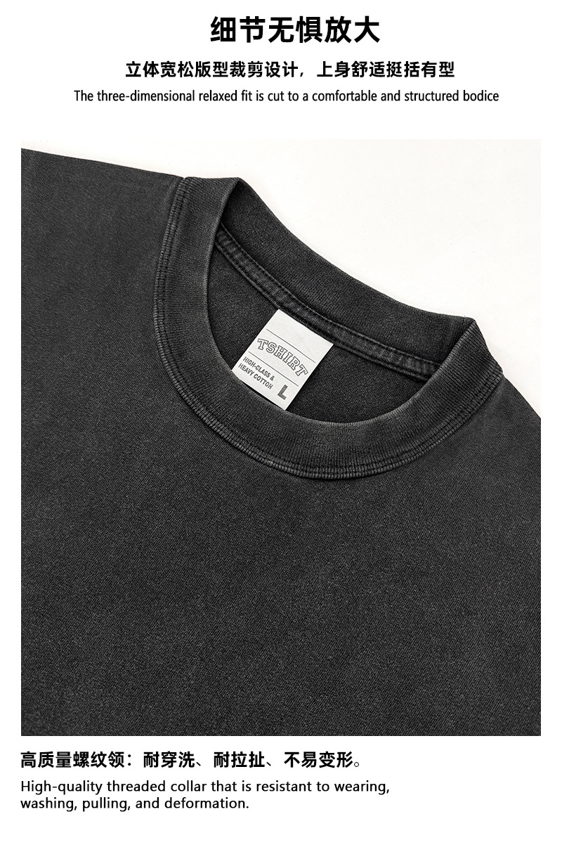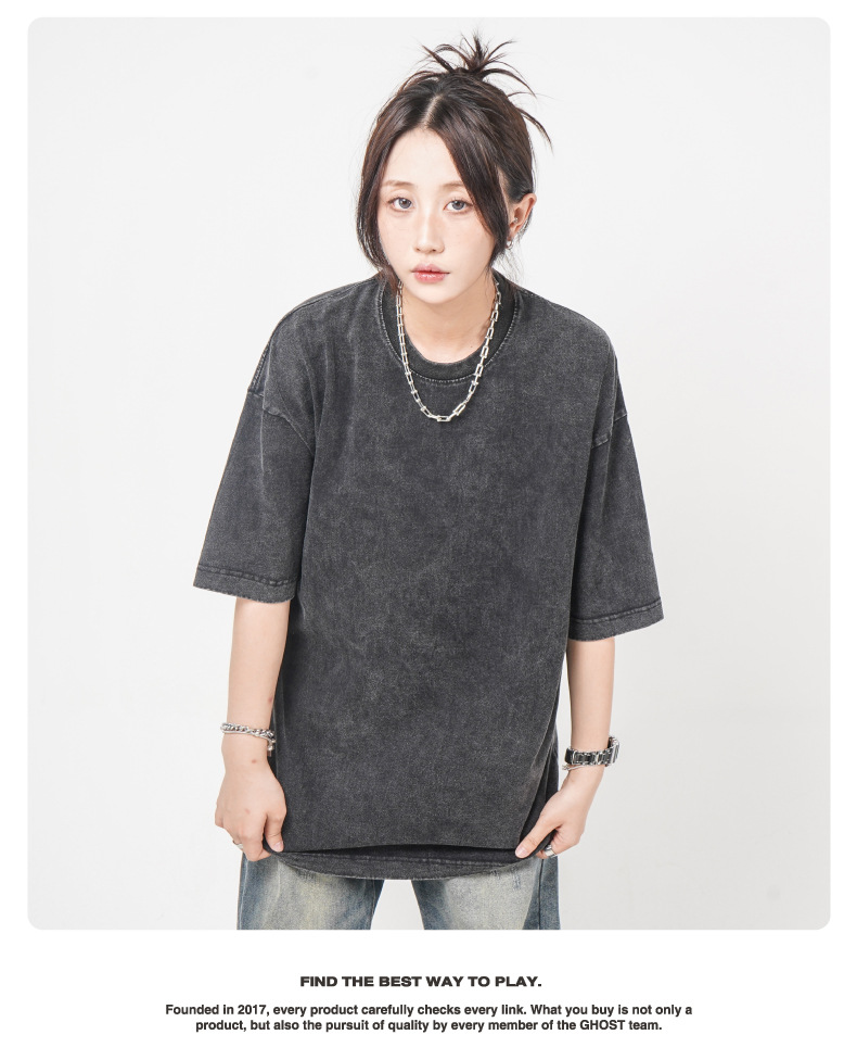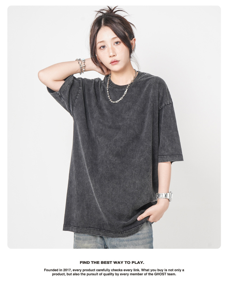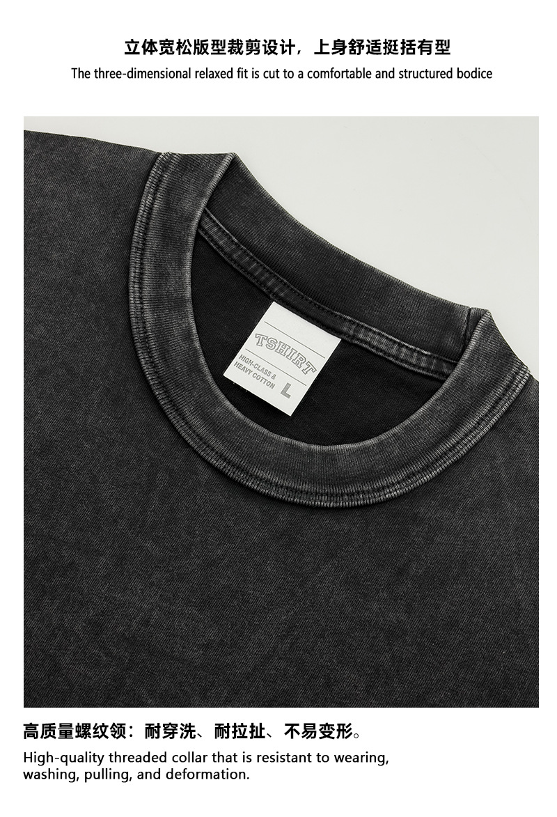 Camiseta de manga corta retro desgastada de algodón pesado transfronterizo 260G versión de lavado de agua suelta cuello redondo de moda base lisa T