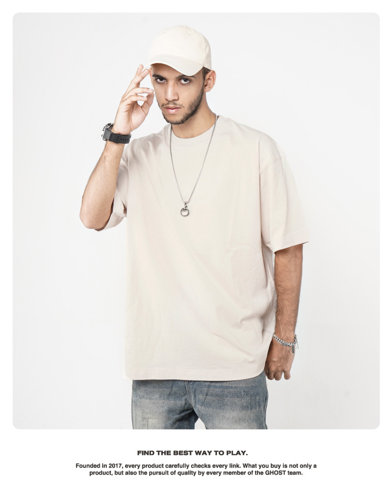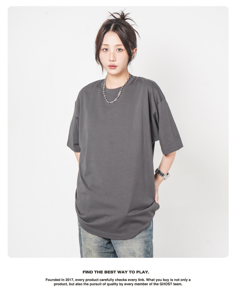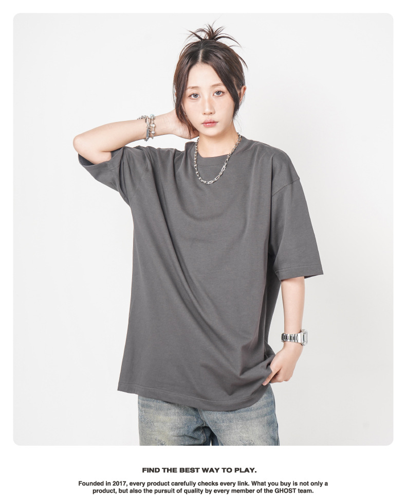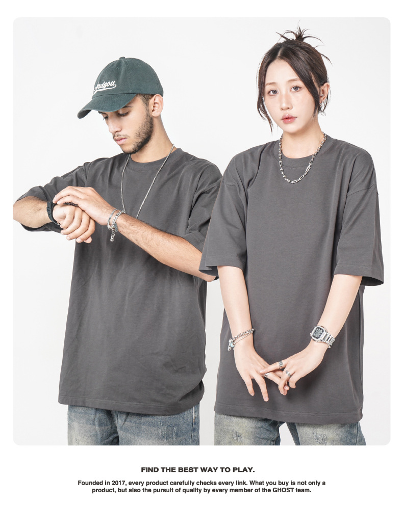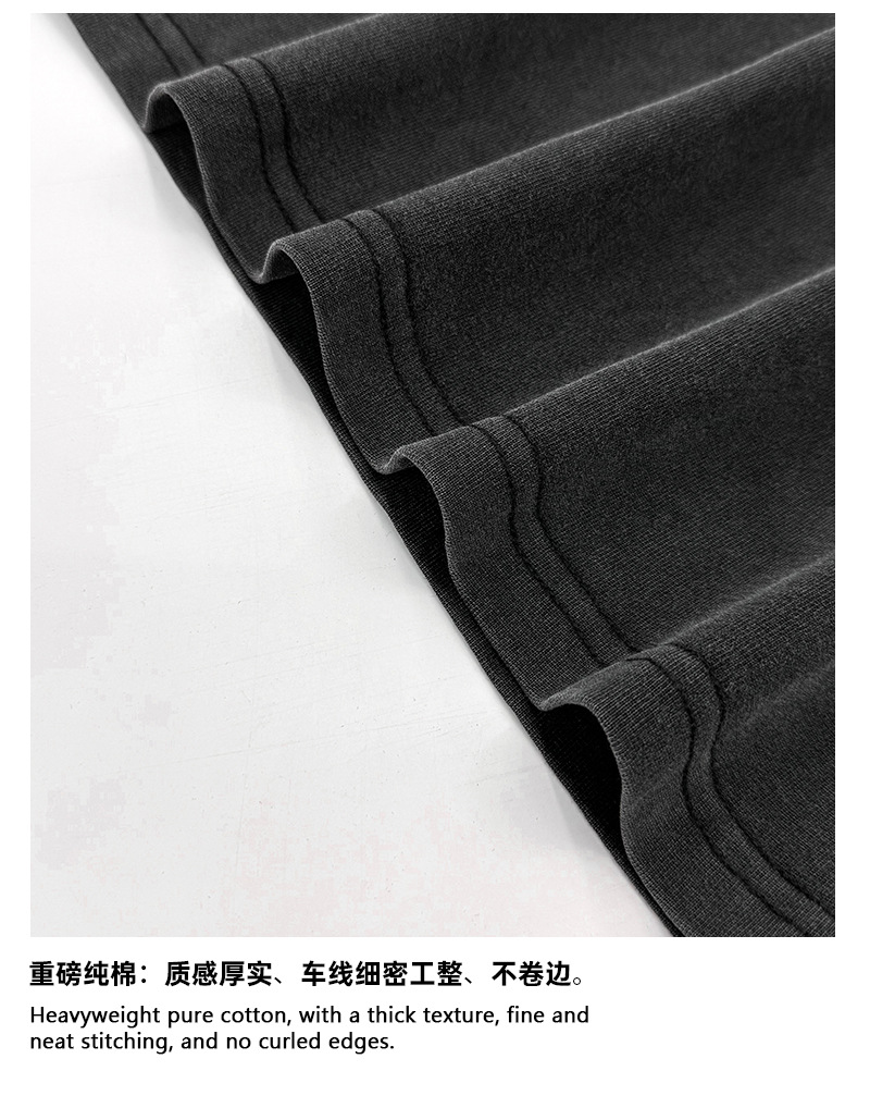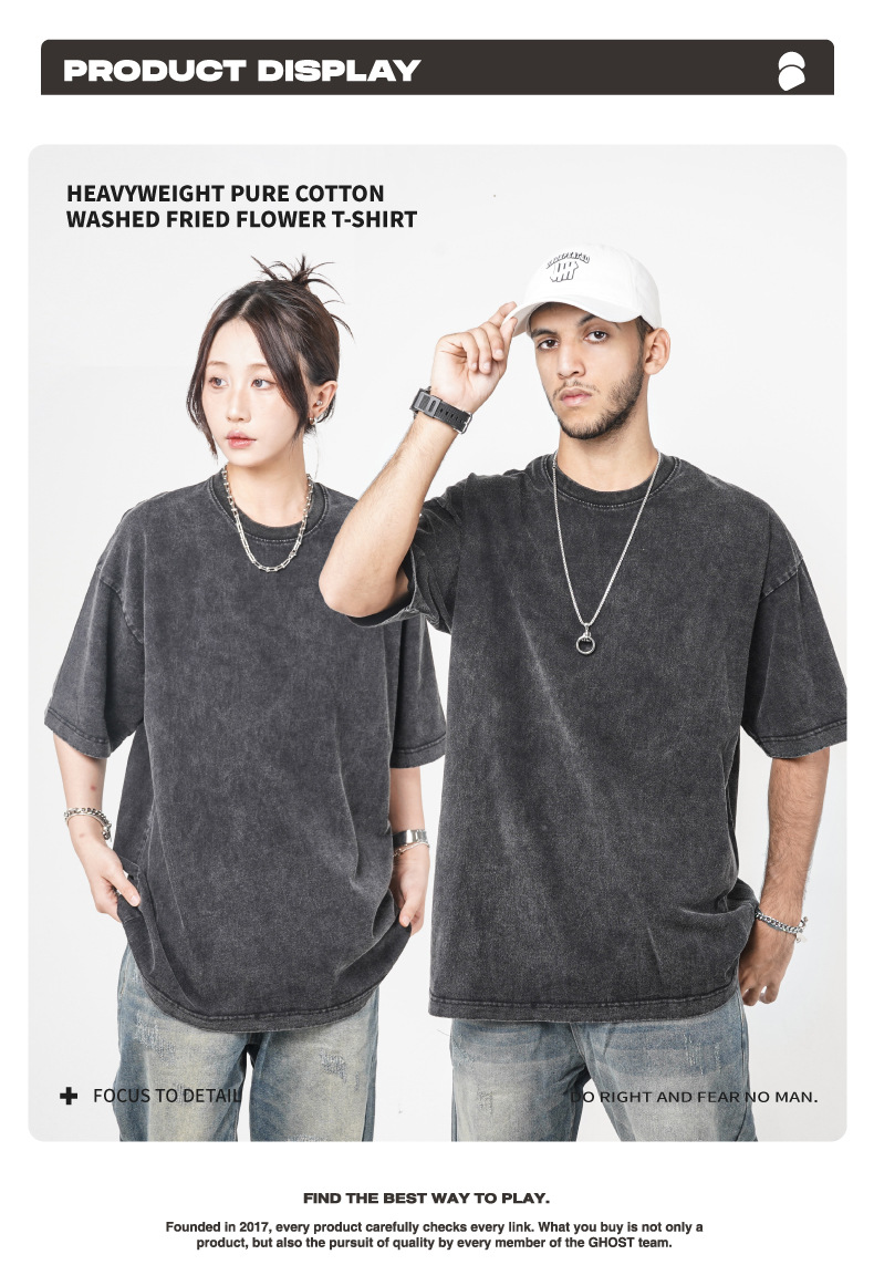 Camiseta de manga corta retro desgastada de algodón pesado transfronterizo 260G versión de lavado de agua suelta cuello redondo de moda base lisa T