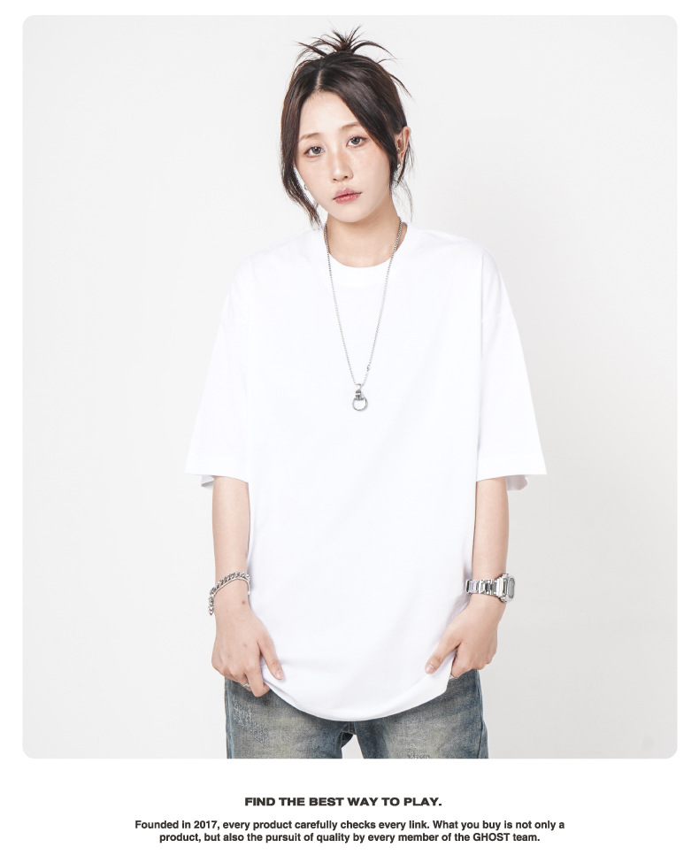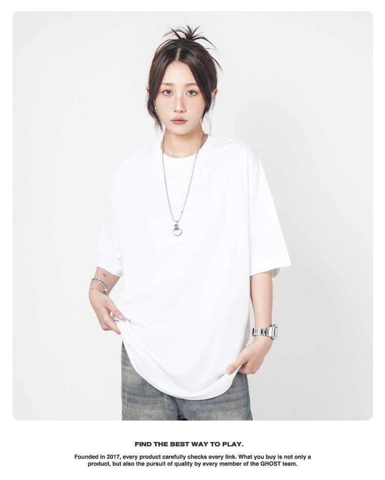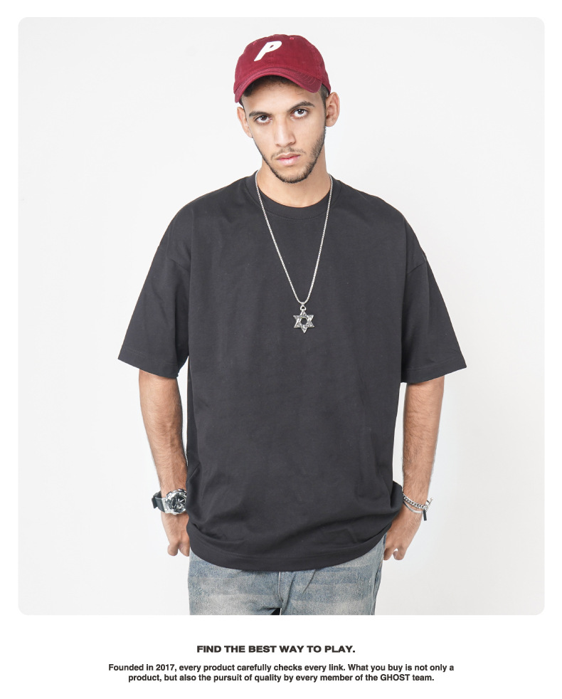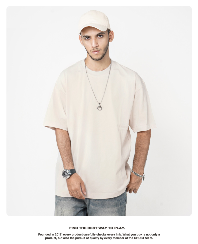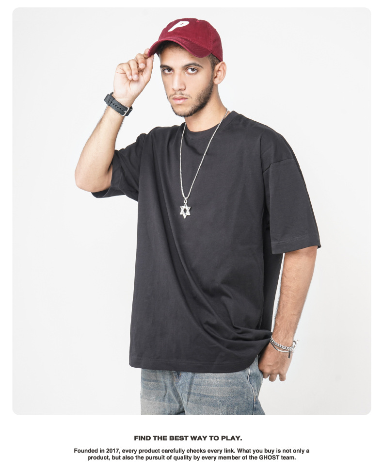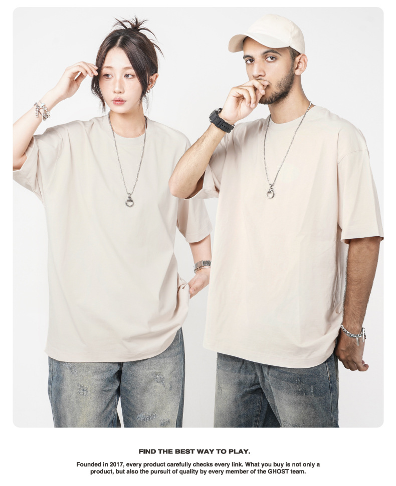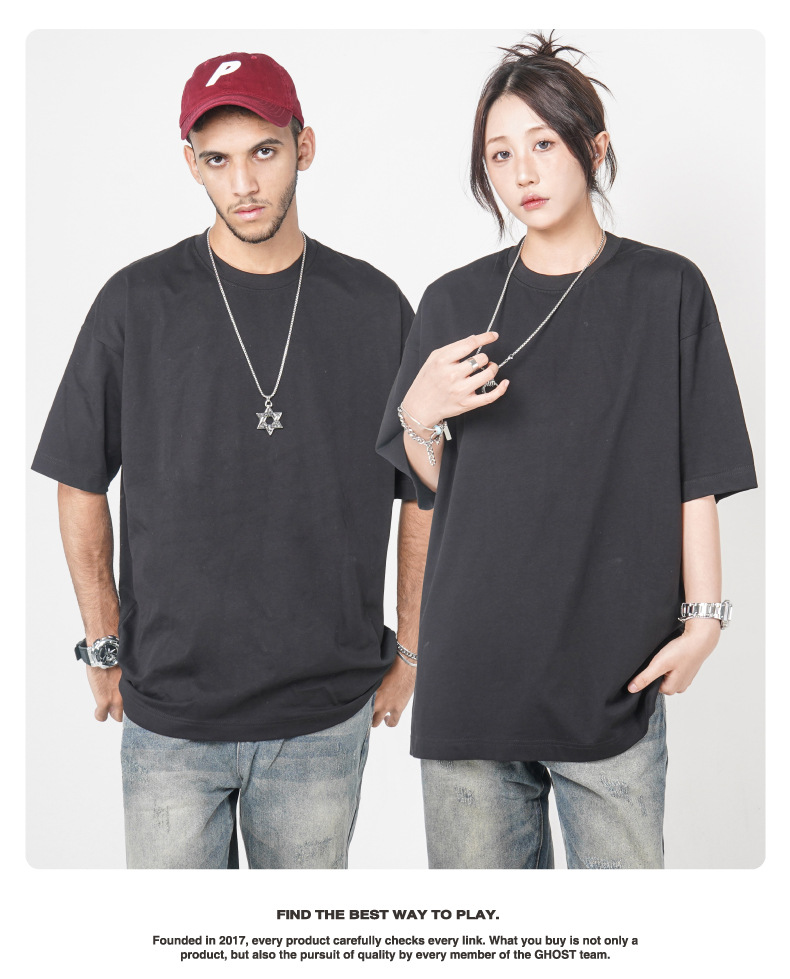 Camiseta de manga corta retro desgastada de algodón pesado transfronterizo 260G versión de lavado de agua suelta cuello redondo de moda base lisa T