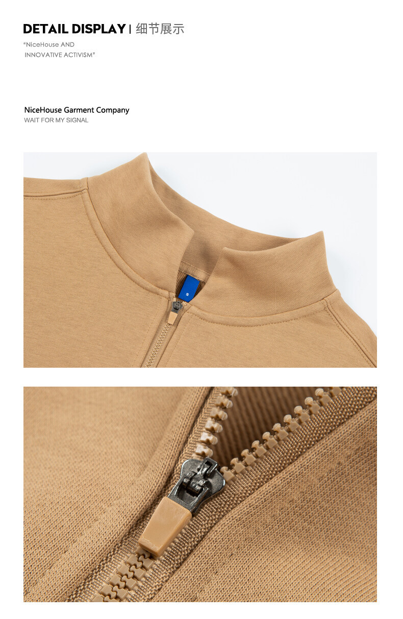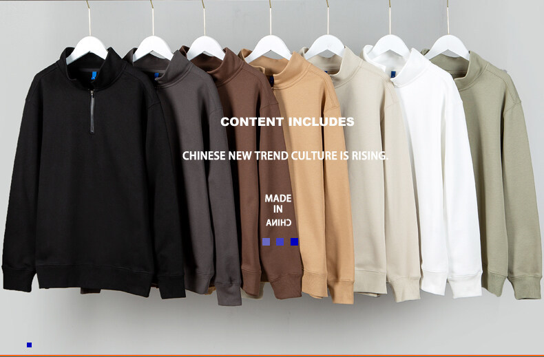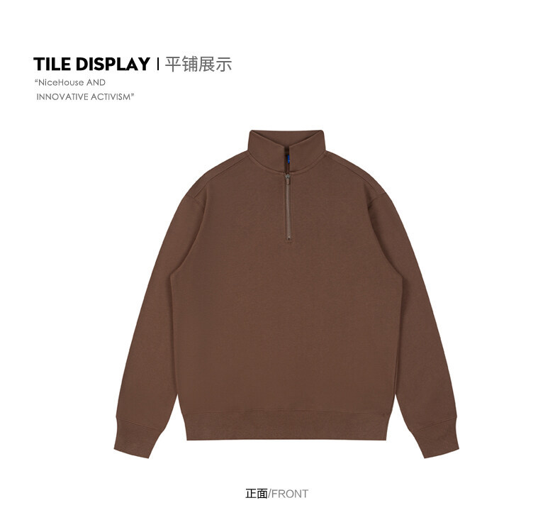 Sudadera con media cremallera para hombres y mujeres, personalizada, de peso pesado, 350g, cuello alto medio, marca de moda, color puro, suéter suelto, sudadera de algodón casual para hombres.