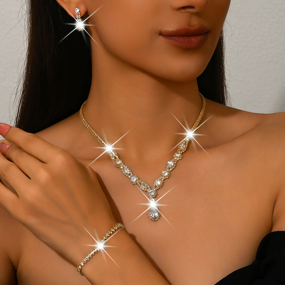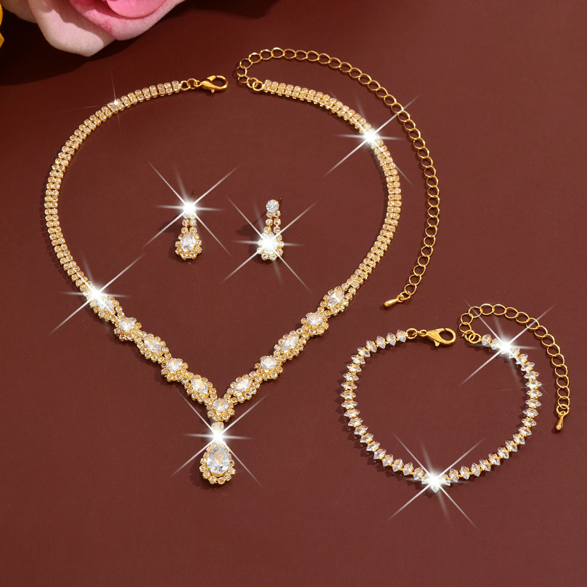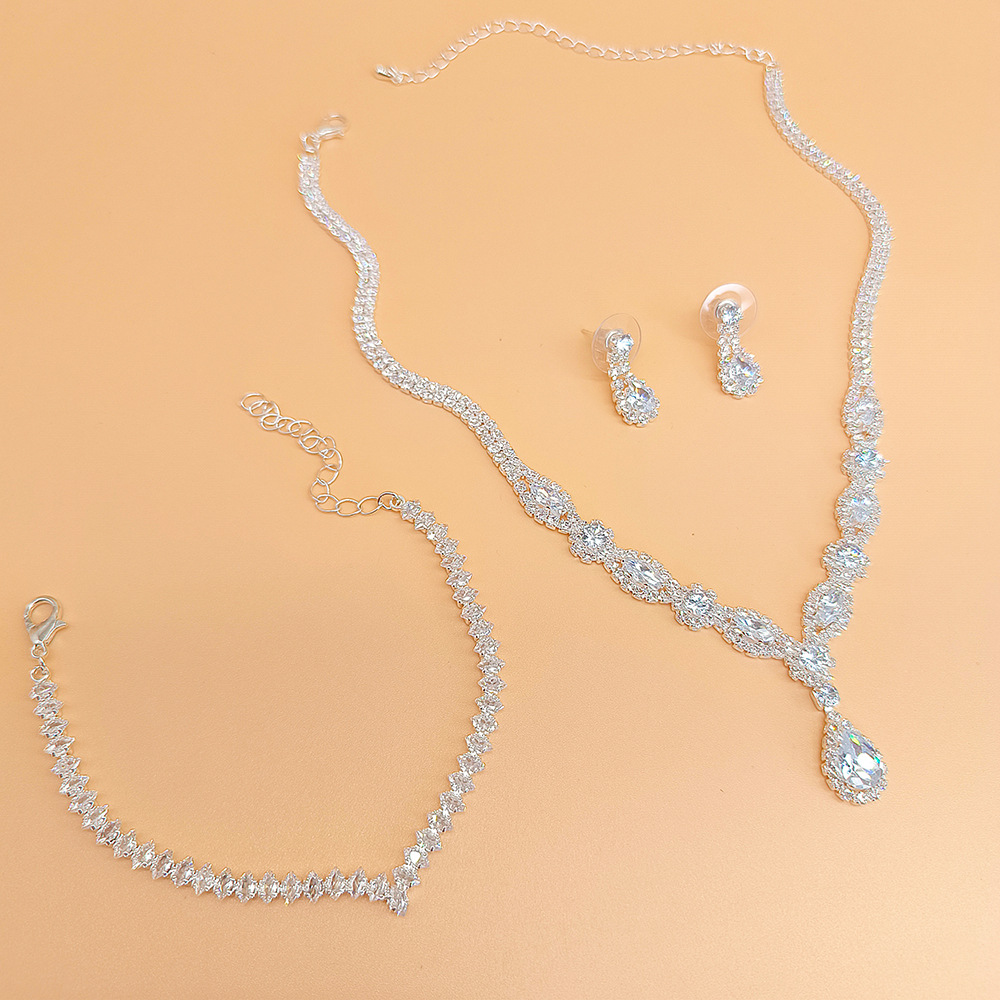 Joyería europea y americana al por mayor suministro transfronterizo circón joyería nupcial pendientes pulsera collar conjunto