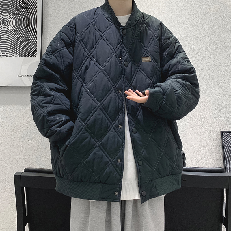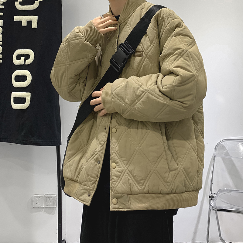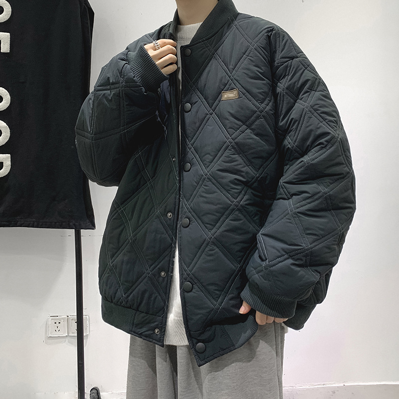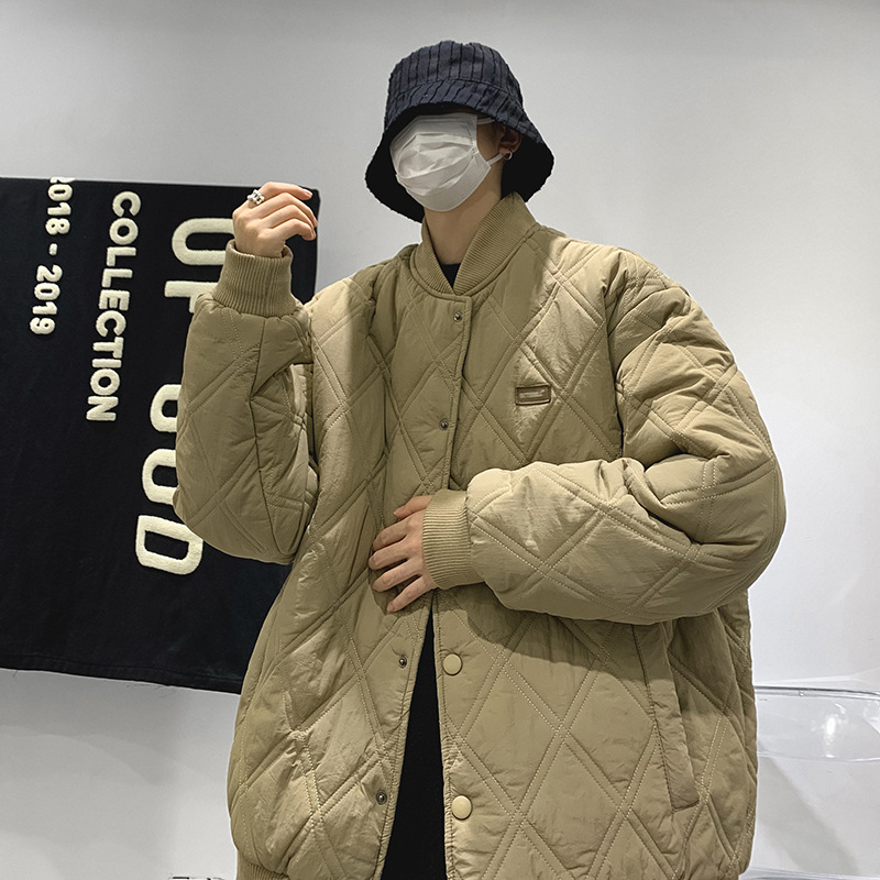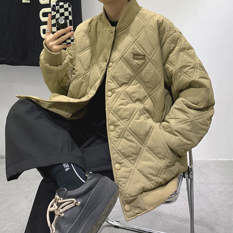 Estilo japonés rombo engrosada abrigo de invierno de los hombres ropa de algodón acolchado marca de moda suelta americana retro pareja desgaste herramientas de algodón acolchado ropa de moda