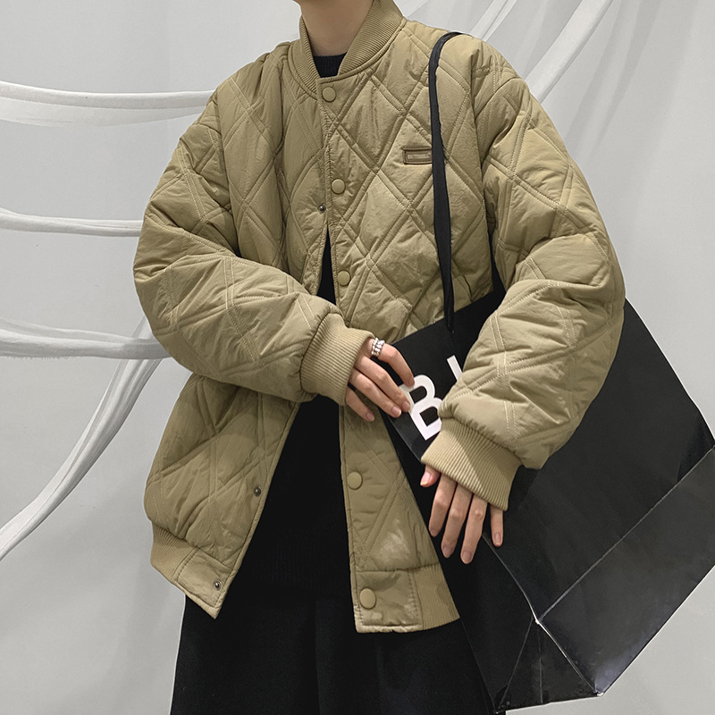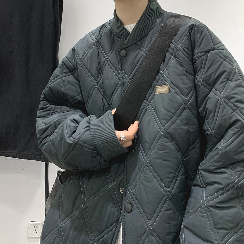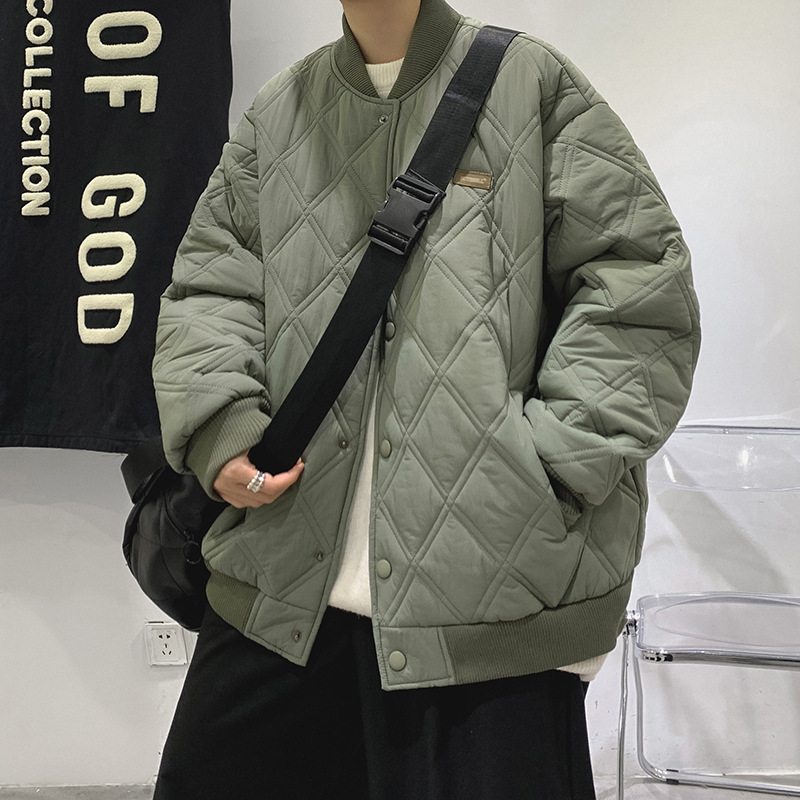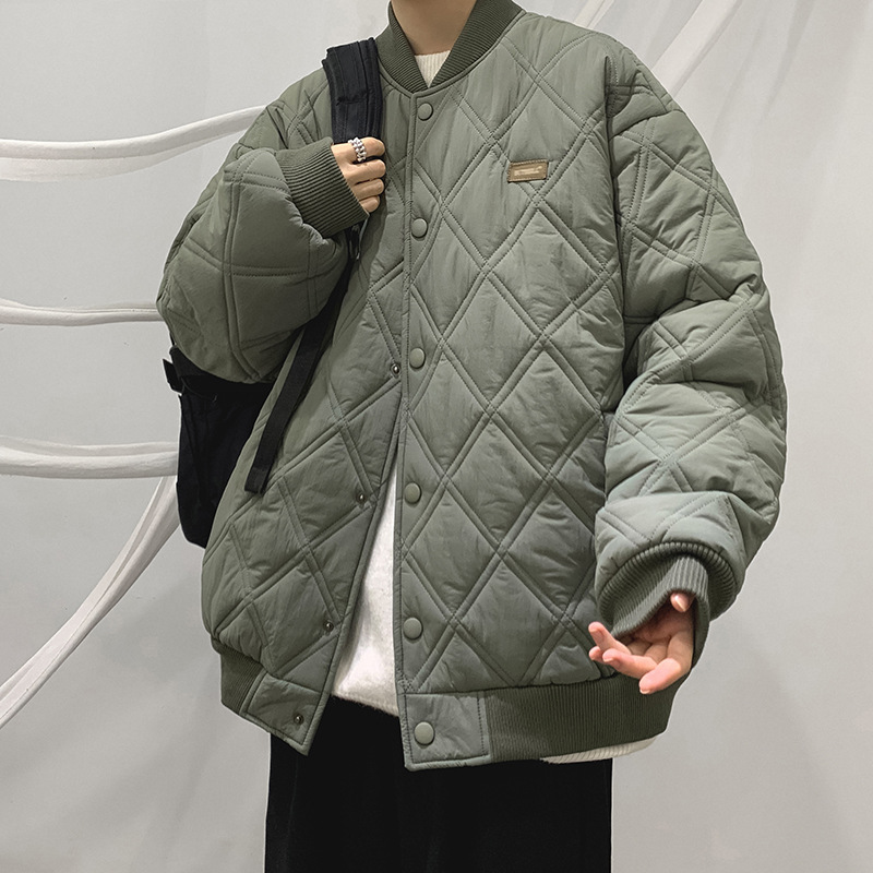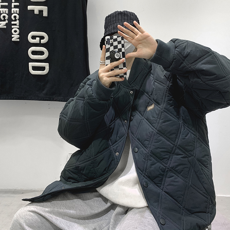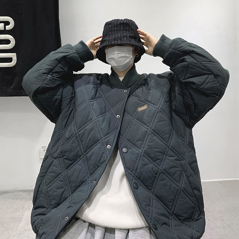 Estilo japonés rombo engrosada abrigo de invierno de los hombres ropa de algodón acolchado marca de moda suelta americana retro pareja desgaste herramientas de algodón acolchado ropa de moda