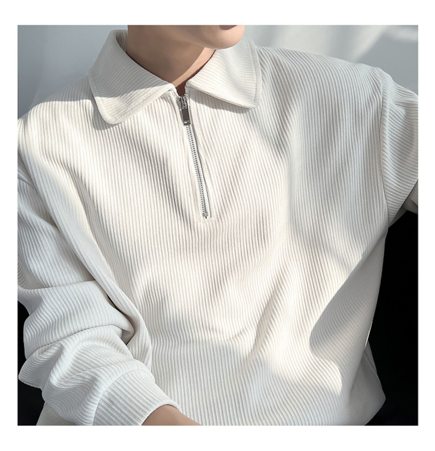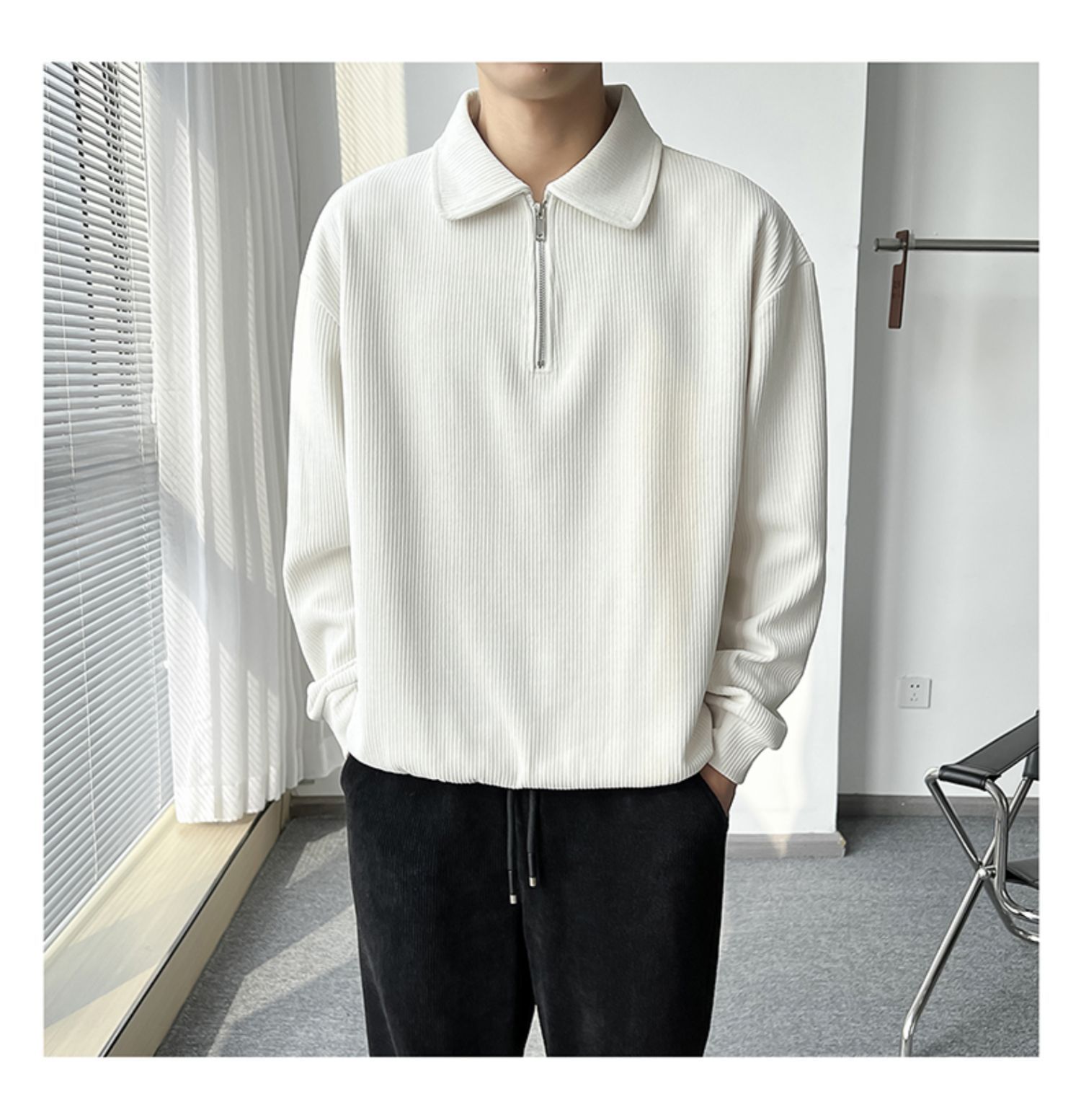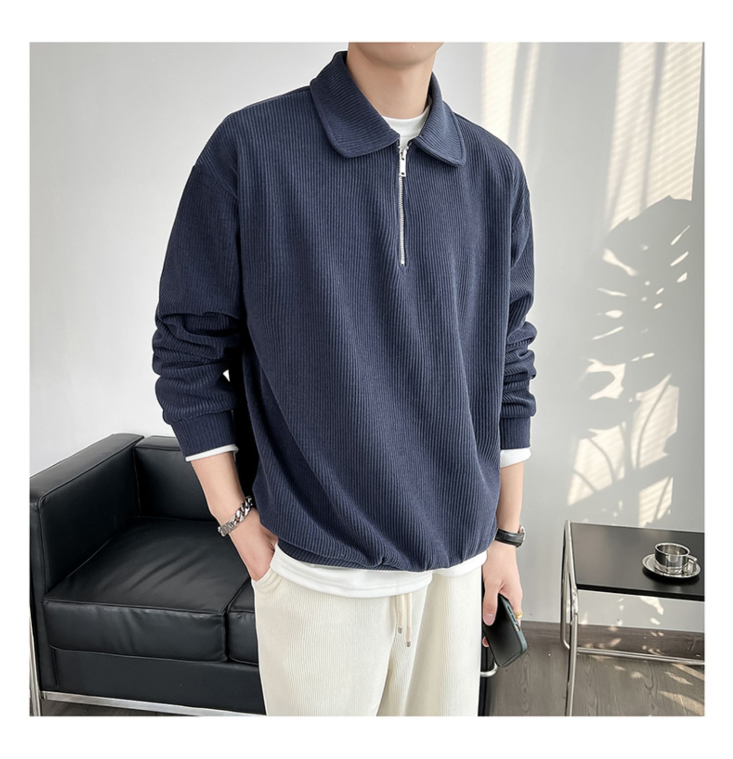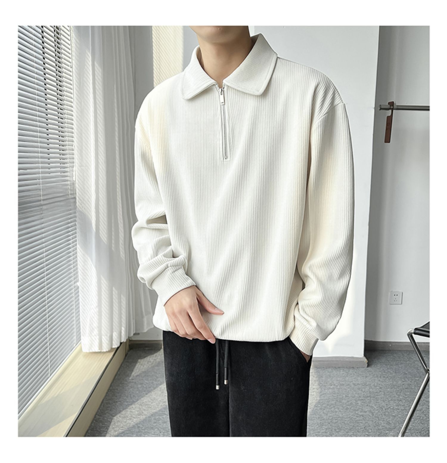 Ruan Shuai frito luz de la calle maduro estilo juvenil solapa rayas abrigo medio cremallera Polo suéter de los hombres otoño marca de moda