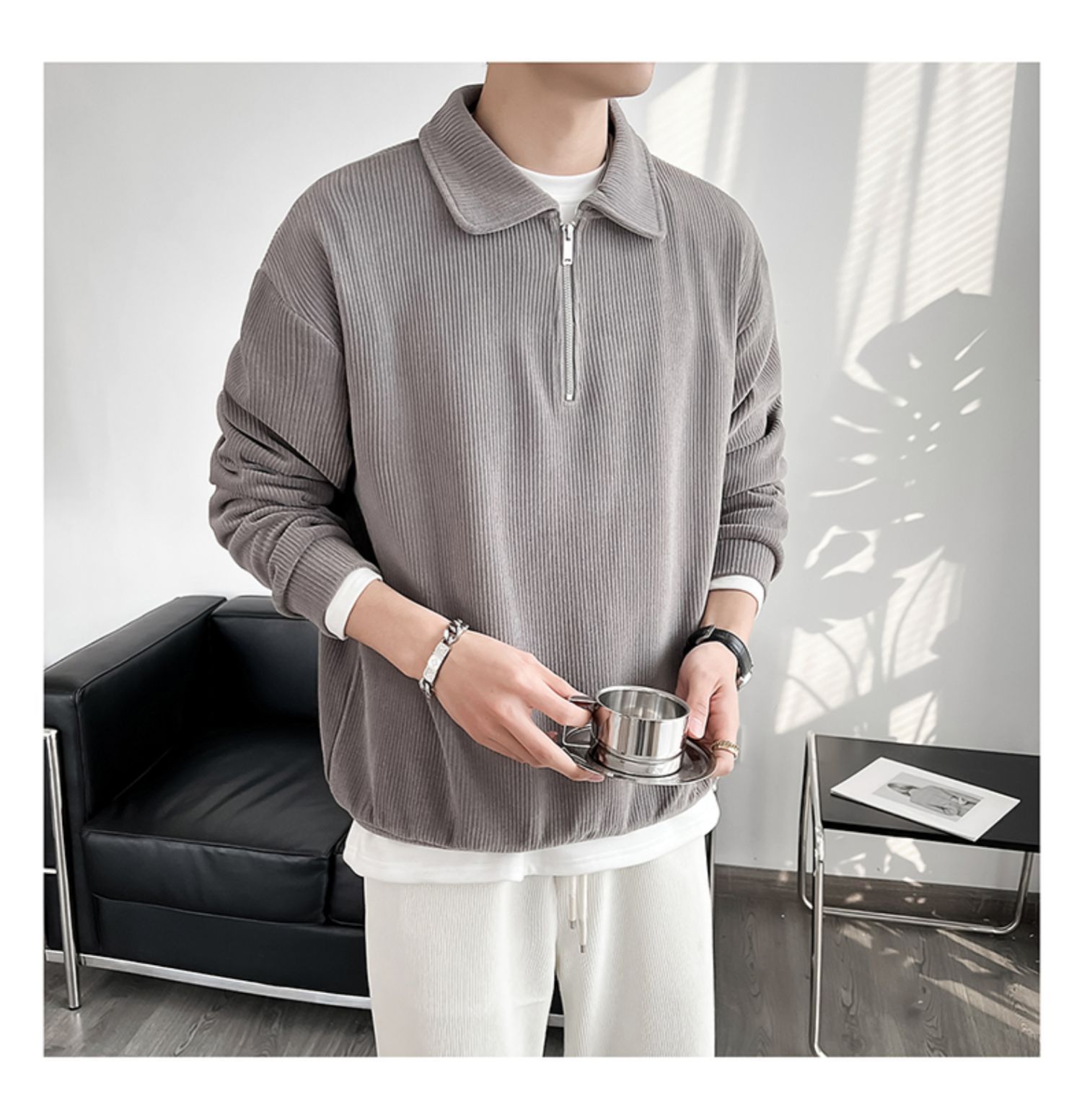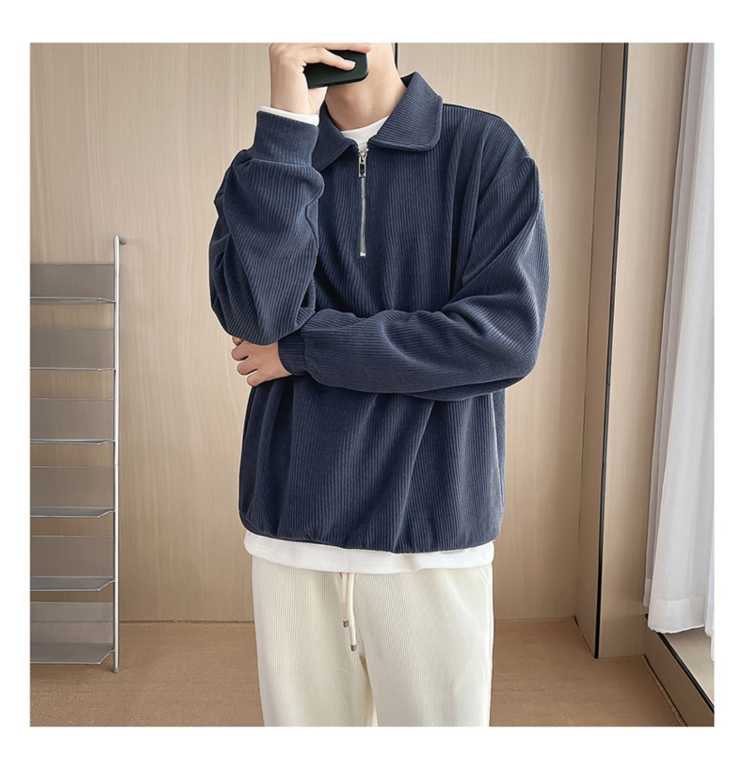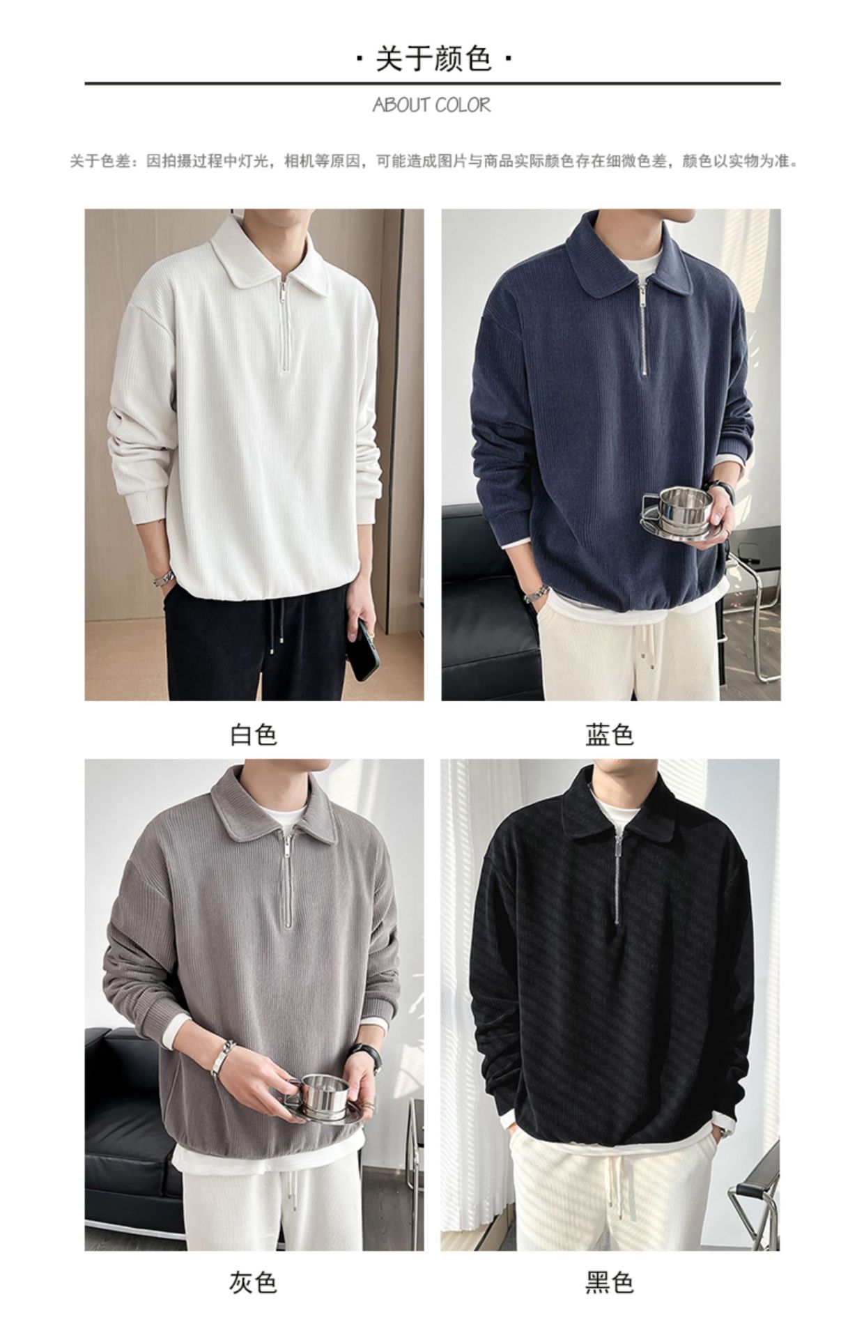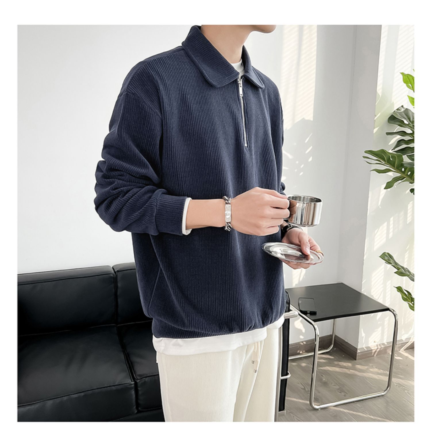 Ruan Shuai frito luz de la calle maduro estilo juvenil solapa rayas abrigo medio cremallera Polo suéter de los hombres otoño marca de moda