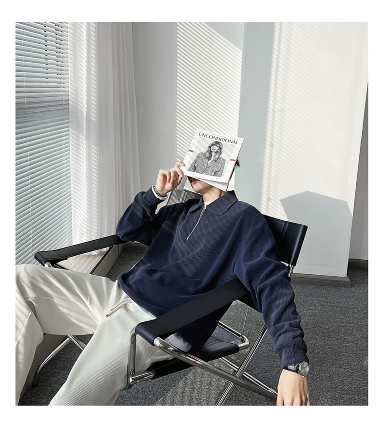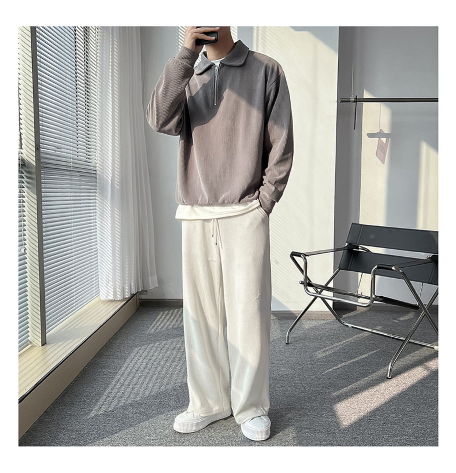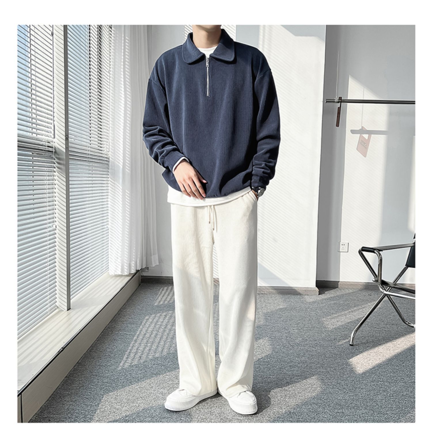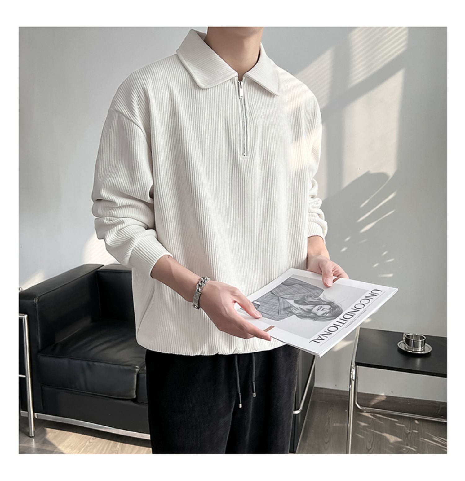 Ruan Shuai frito luz de la calle maduro estilo juvenil solapa rayas abrigo medio cremallera Polo suéter de los hombres otoño marca de moda