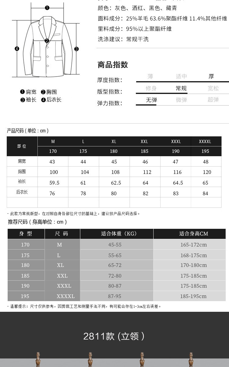 | Color | 2811 Gris (engrosado),2811 Negro (engrosado),2811 azul marino (engrosado),2811 rojo vino (espesado),J001 Gris,J001 negro,J001 vino tinto |