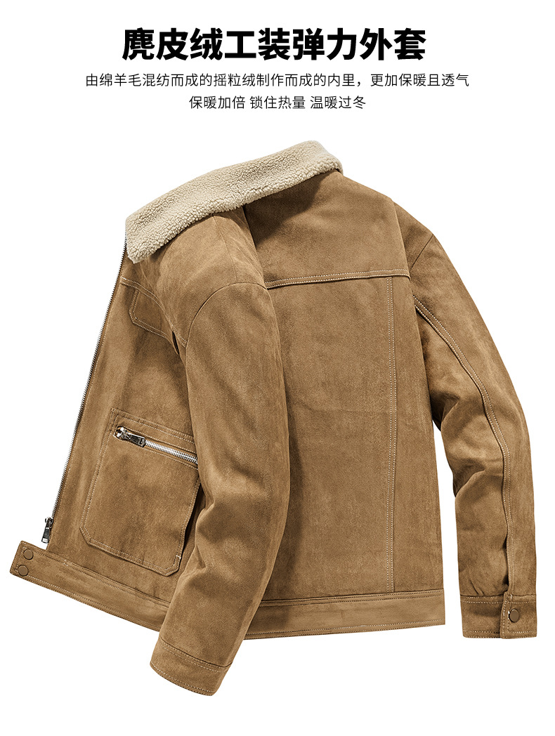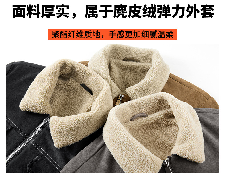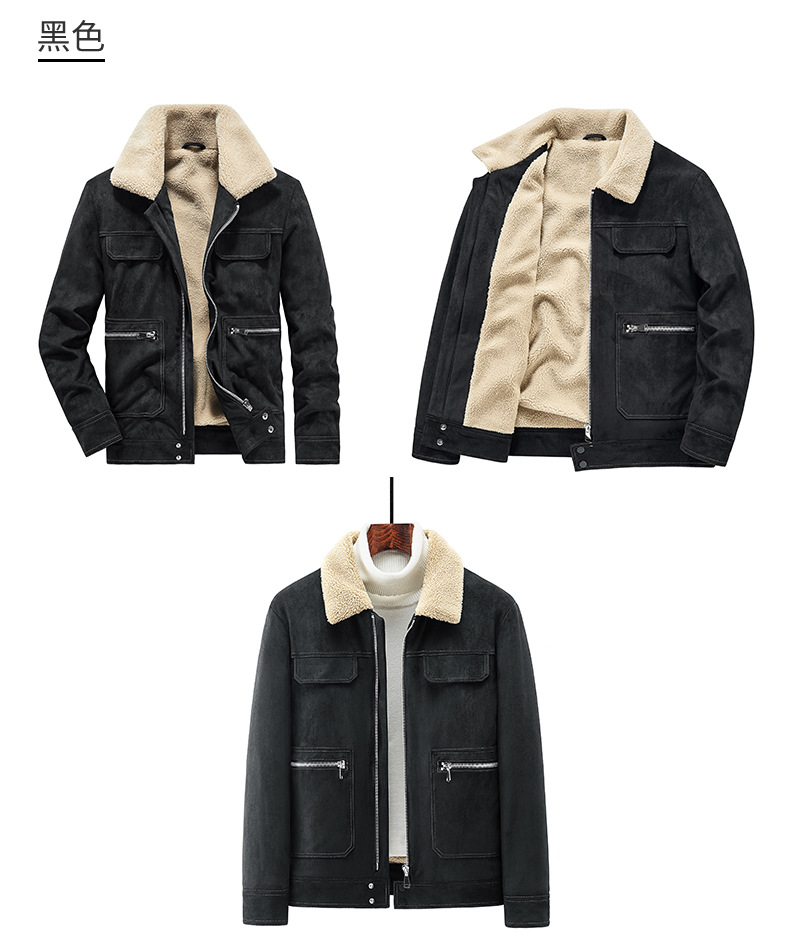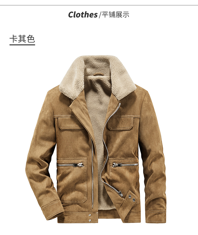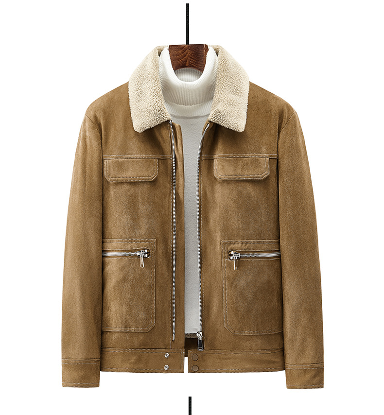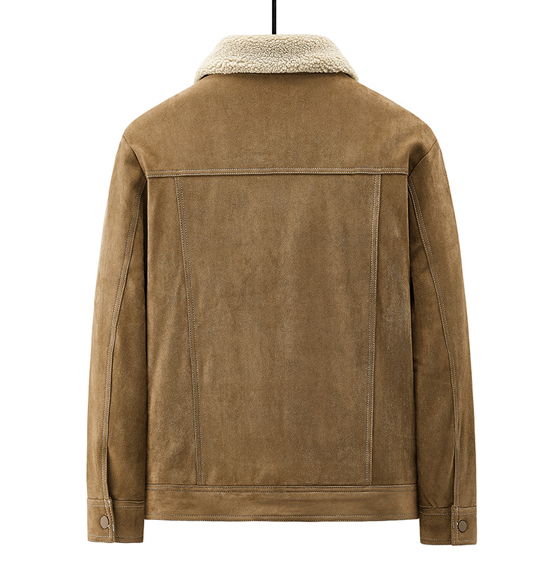 Abrigo de algodón acolchado de gamuza para hombres Otoño e Invierno ropa de trabajo vintage abrigo de algodón acolchado Cuello de piel Chaqueta de algodón acolchado chaqueta forrada de lana de cordero