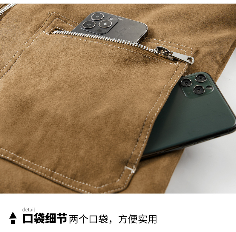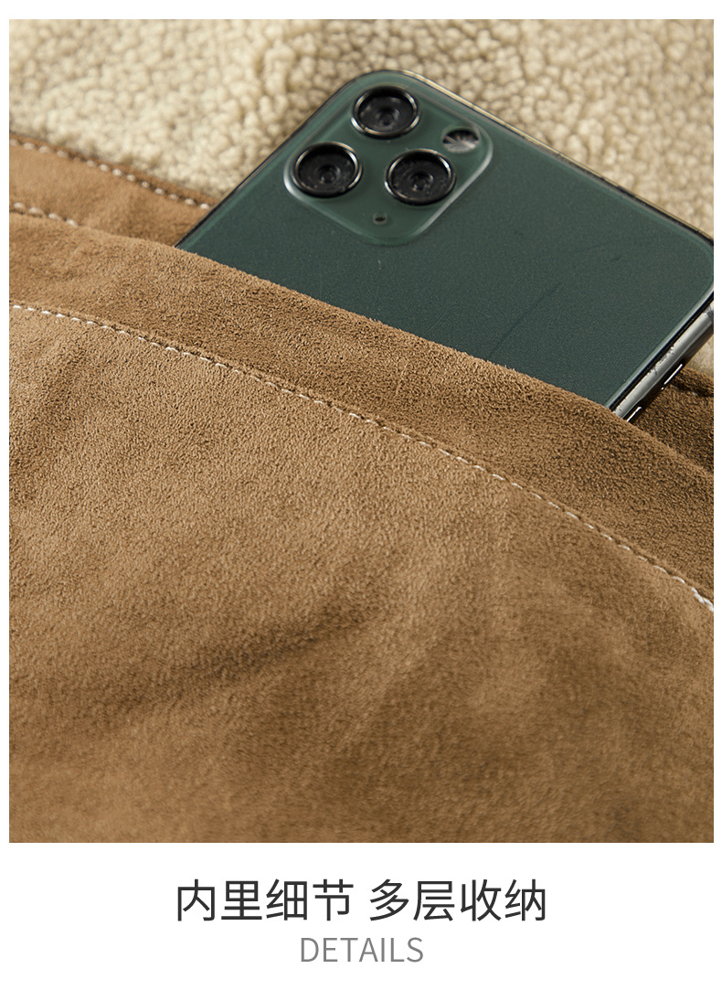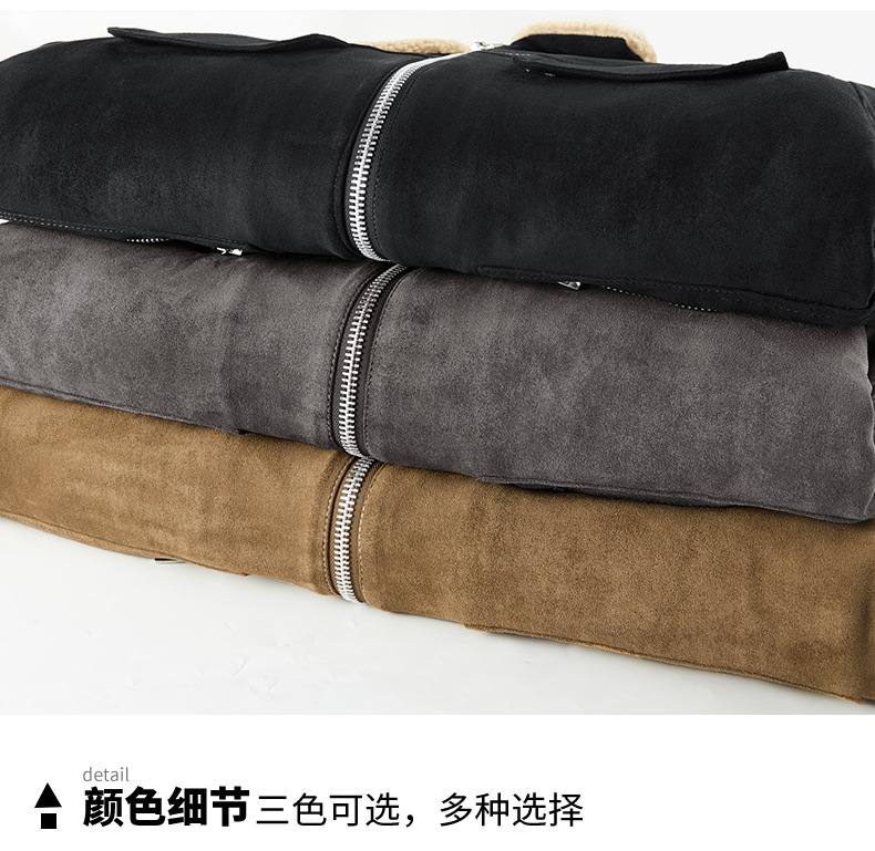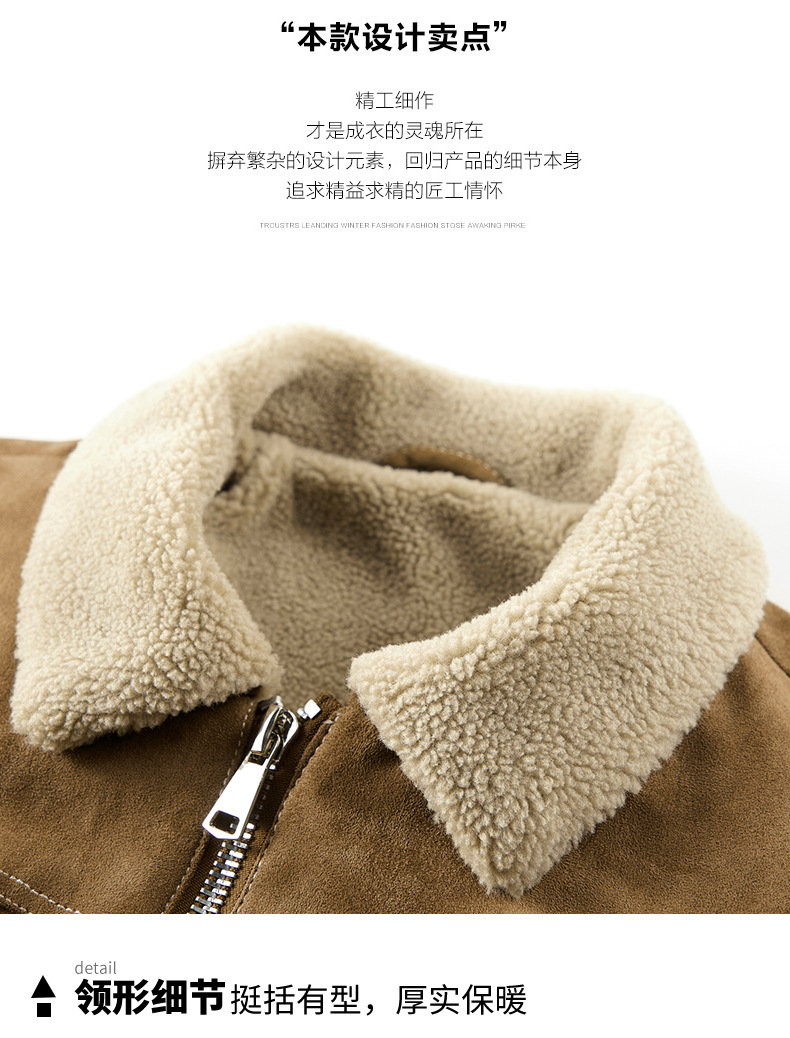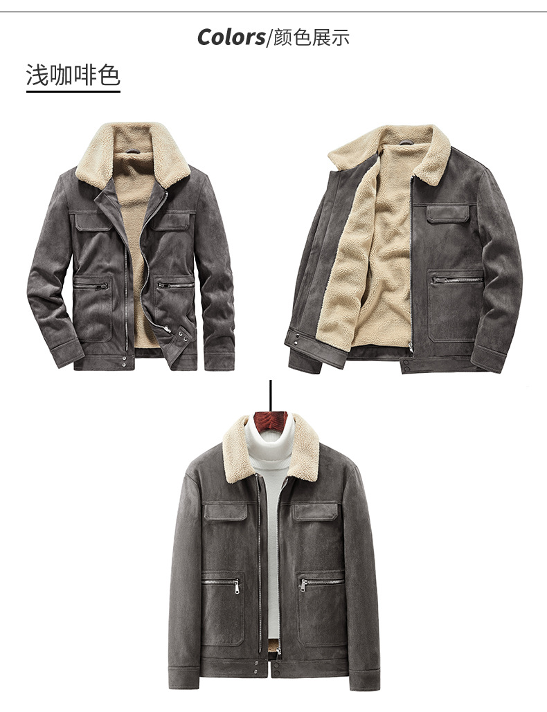 Abrigo de algodón acolchado de gamuza para hombres Otoño e Invierno ropa de trabajo vintage abrigo de algodón acolchado Cuello de piel Chaqueta de algodón acolchado chaqueta forrada de lana de cordero
