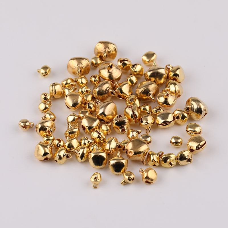 Hecho a mano accesorios de joyería de bricolaje campana de hierro de una palabra campana de oro mascota de dibujos animados decoración de Navidad boca plana campana pequeña