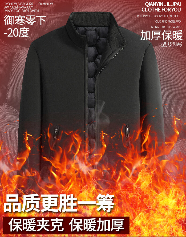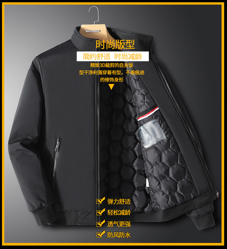 Chaqueta de mediana edad y ancianos Otoño e Invierno Abrigo acolchado de algodón forrado de lana casual de mediana edad abrigo de hombre collar de pie Abrigo acolchado de algodón primavera y otoño ropa de papá