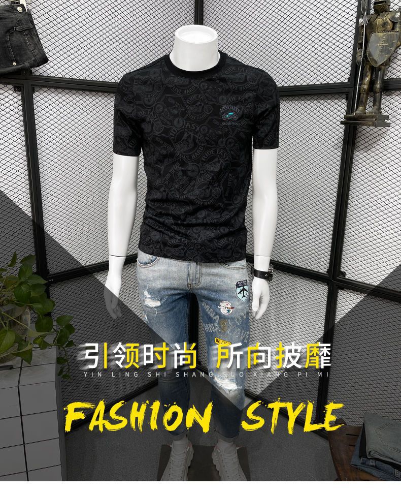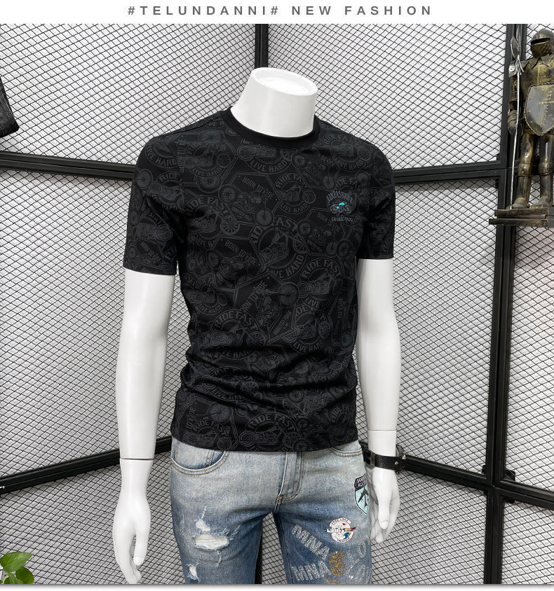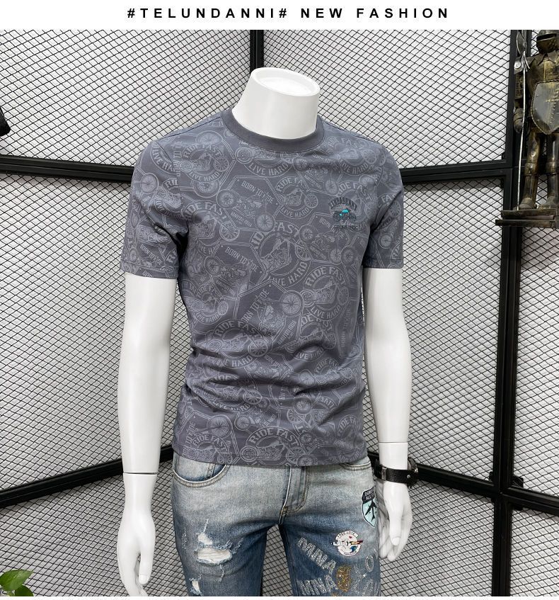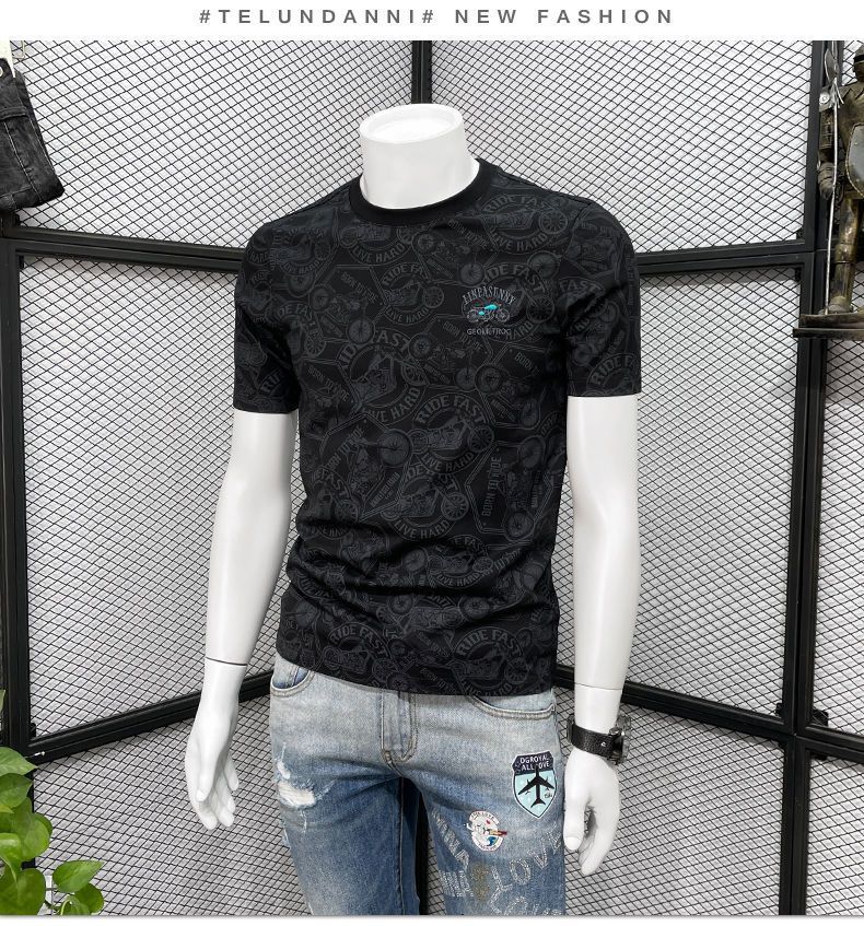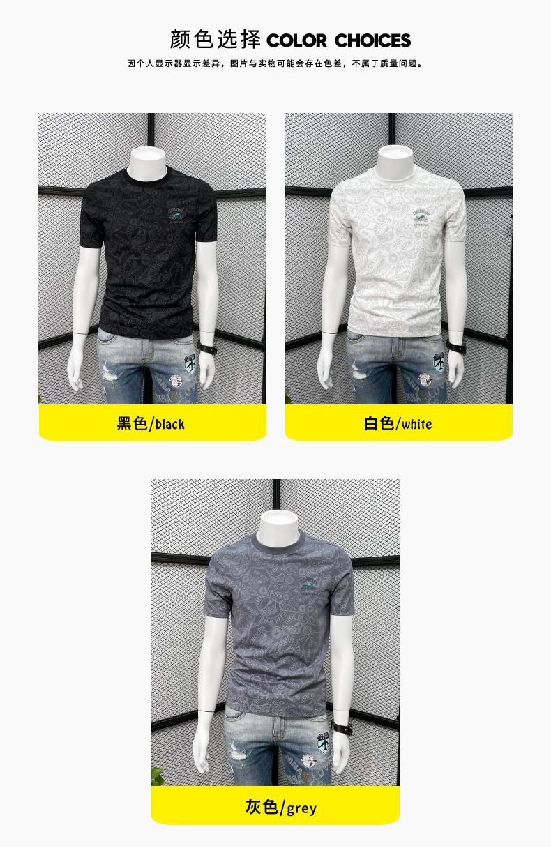 Camiseta de manga corta para hombre verano nueva marca de moda de alta gama bordada top de moda casual de cuerpo completo impreso cuello redondo ropa interior