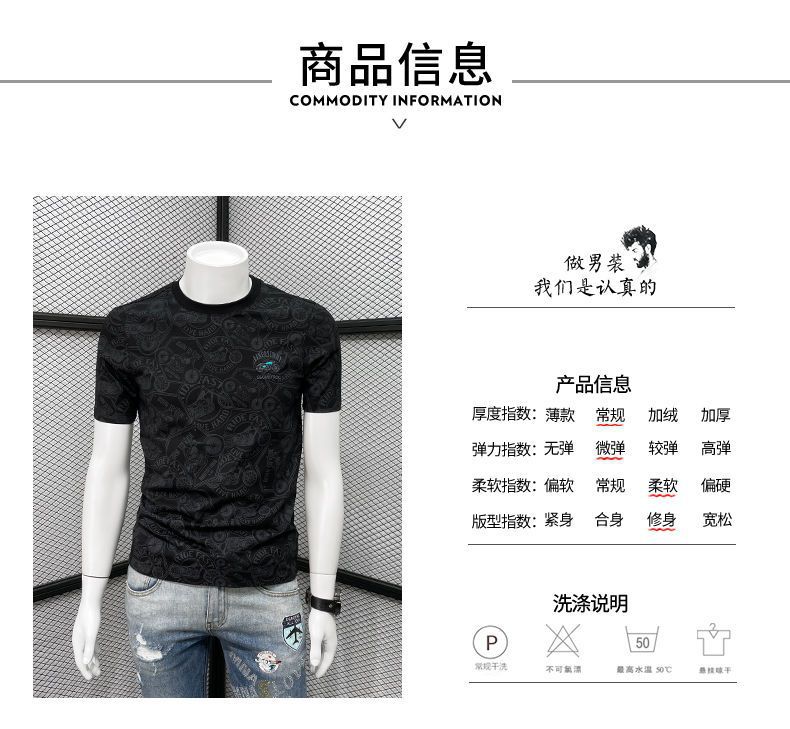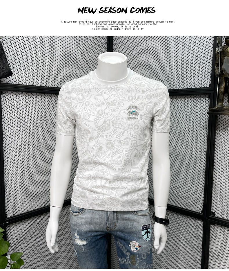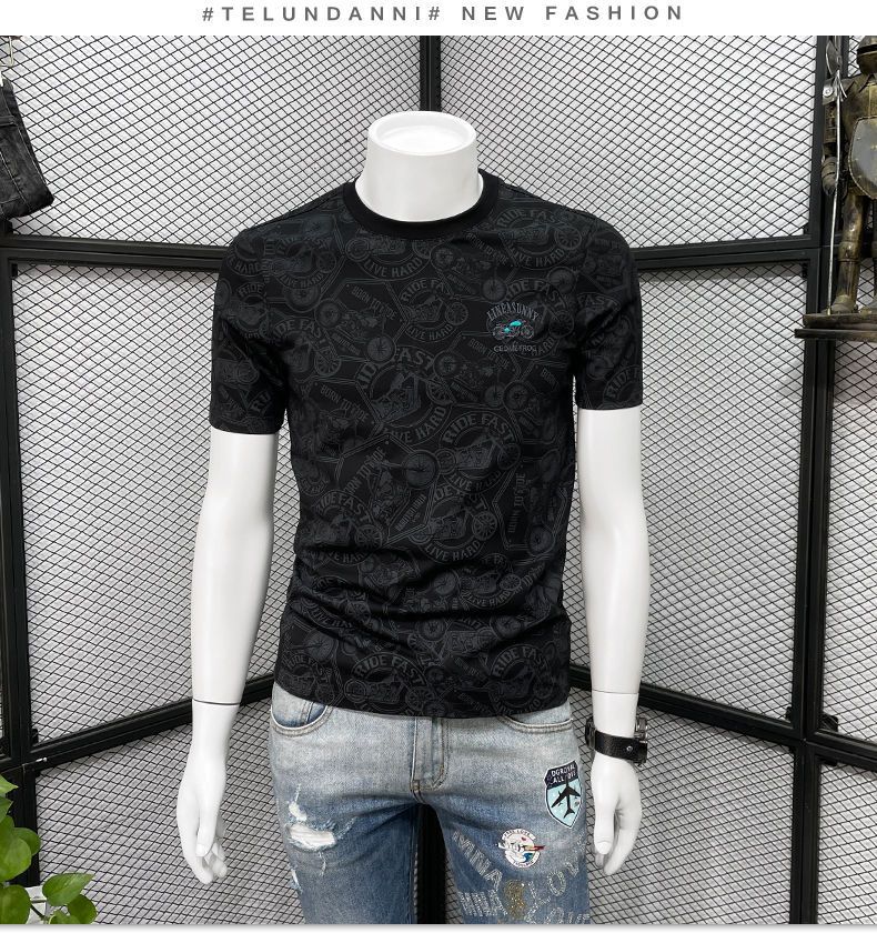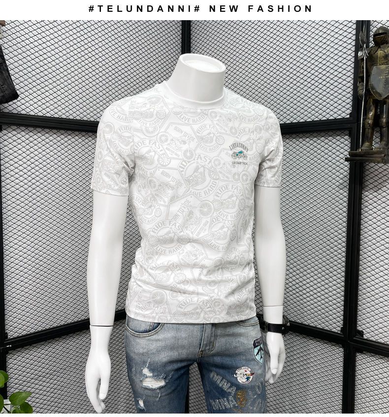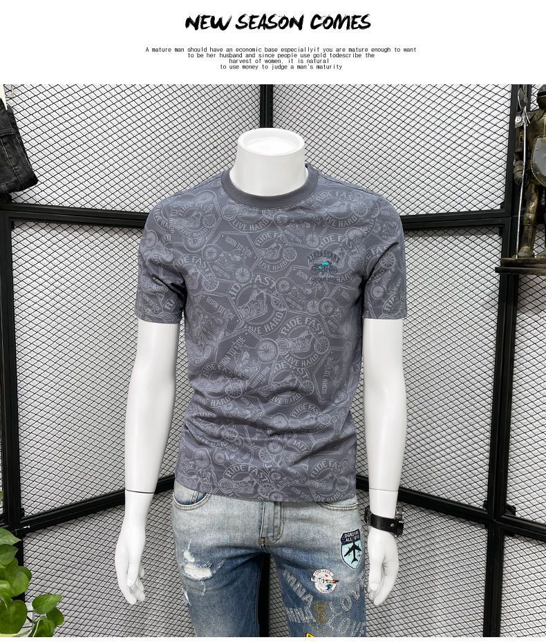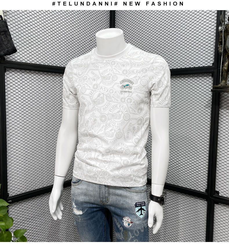 Camiseta de manga corta para hombre verano nueva marca de moda de alta gama bordada top de moda casual de cuerpo completo impreso cuello redondo ropa interior