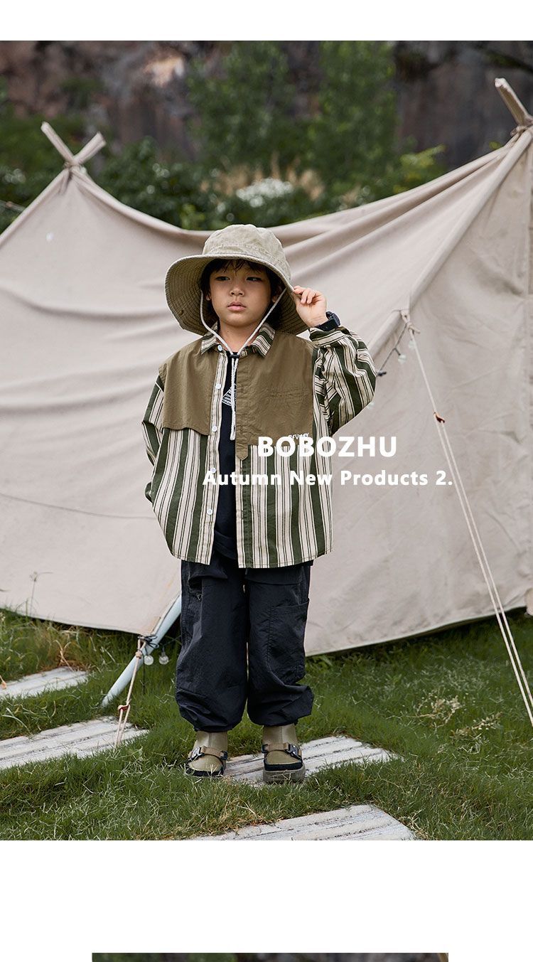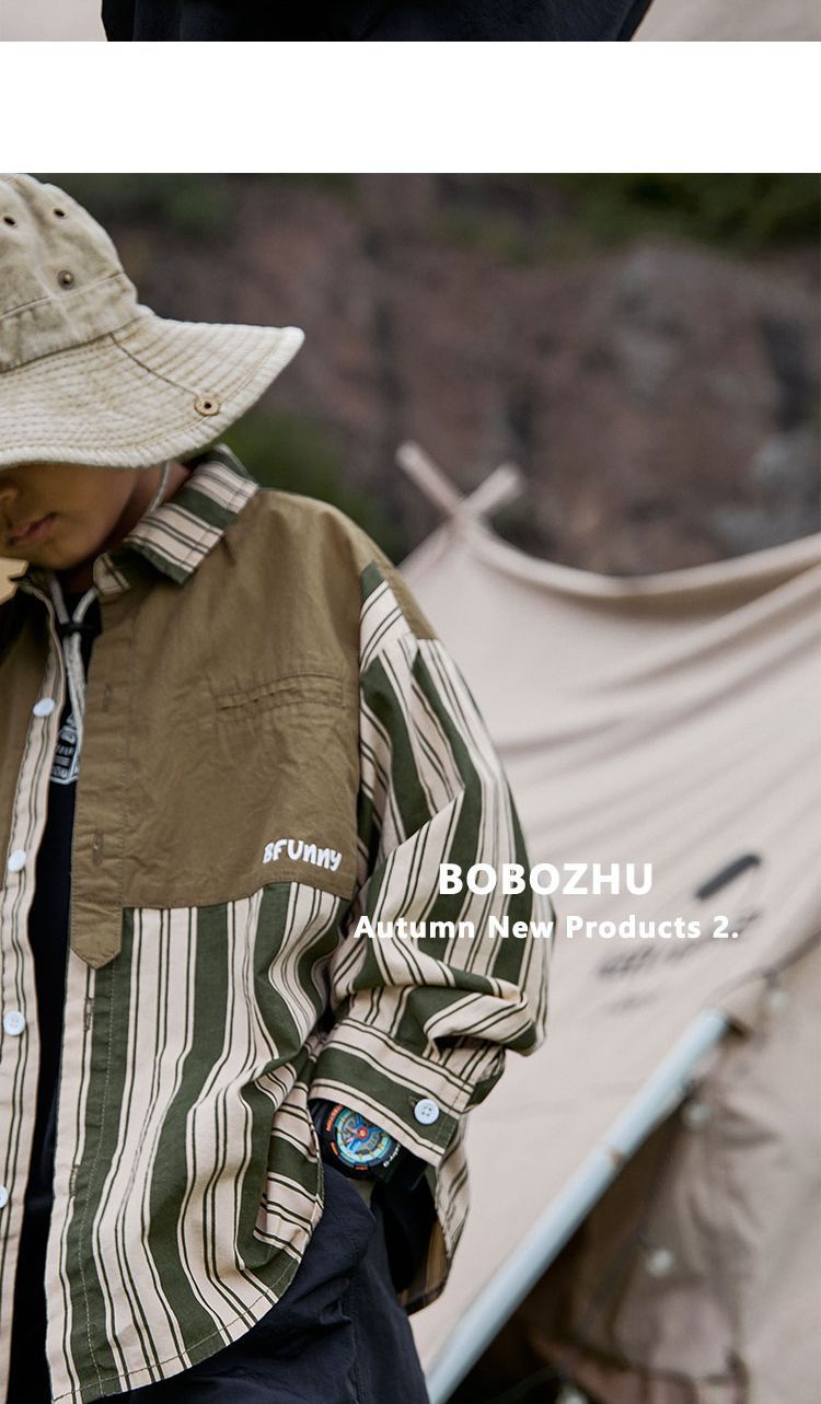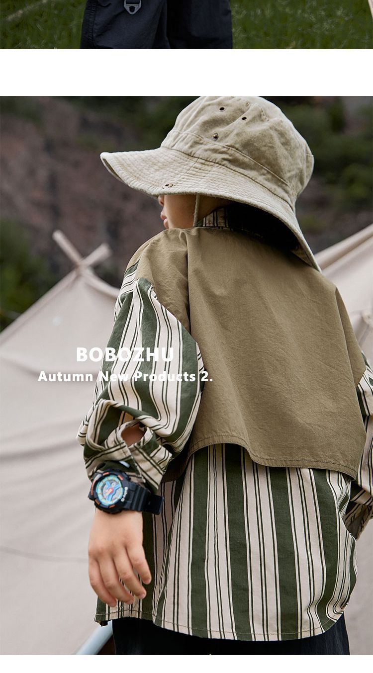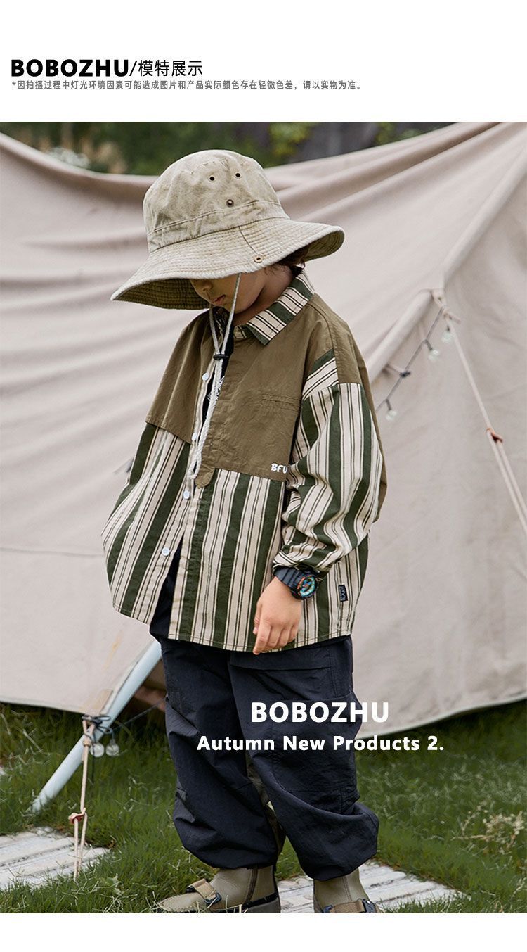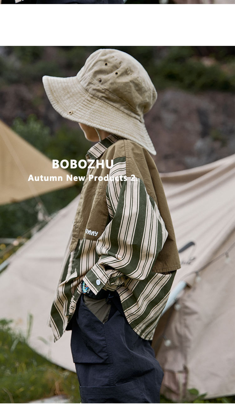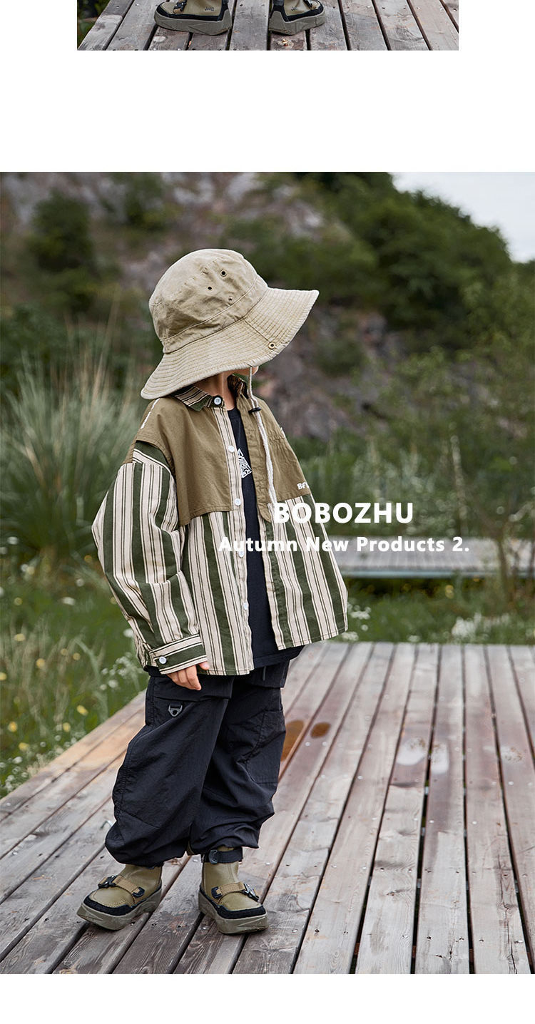 Ropa para niños camping costura camisa a rayas 2022 nuevo otoño niños primavera y otoño de manga larga estilo occidental camisa abrigo