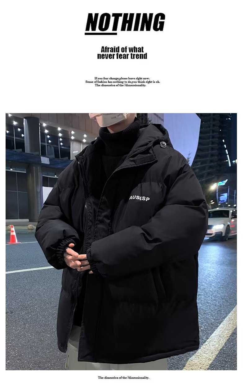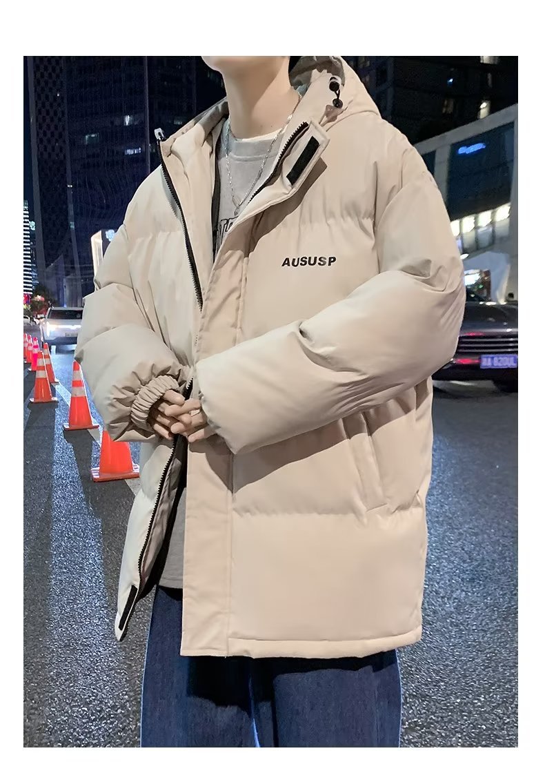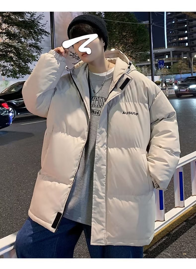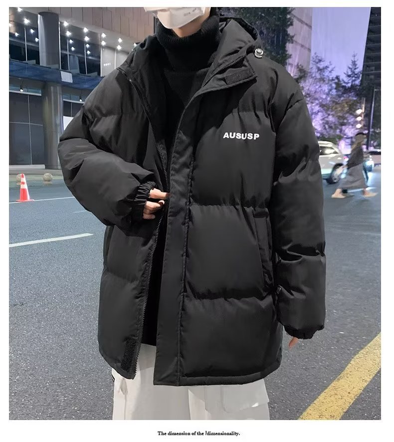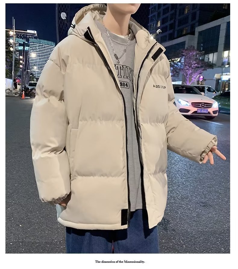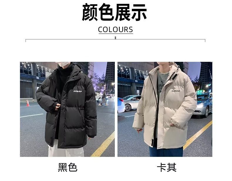 Hong Kong estilo invierno collar engrosada de algodón acolchado abrigo de los hombres de la juventud suelta color sólido impreso marca de moda abrigo de los hombres