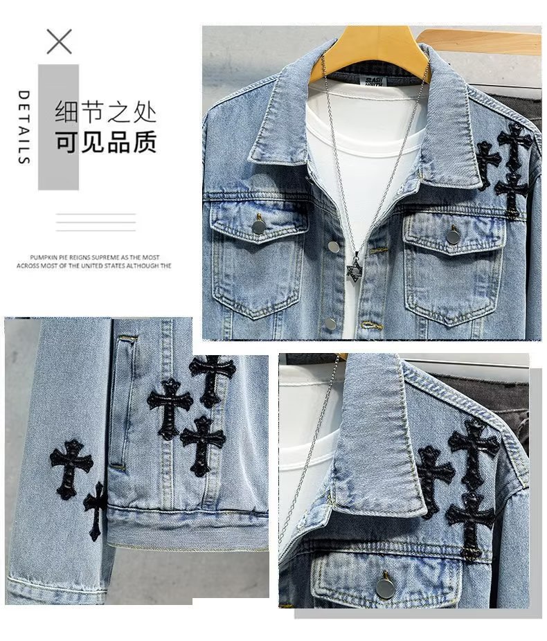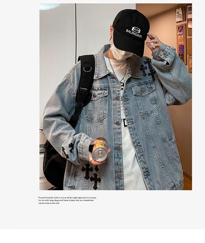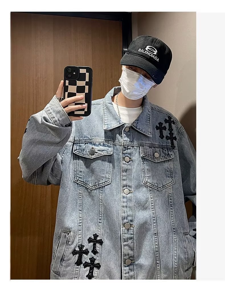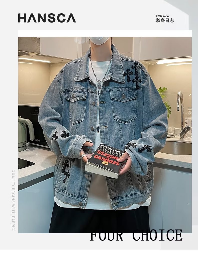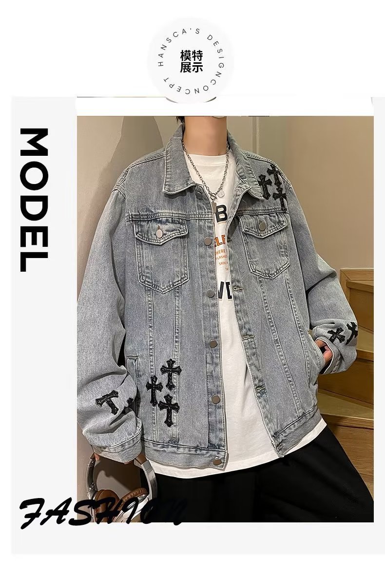 Otoño retro Denim coat hombres de American High Street Fashion Loose Denim chaqueta diseño sentido nicho Cross top