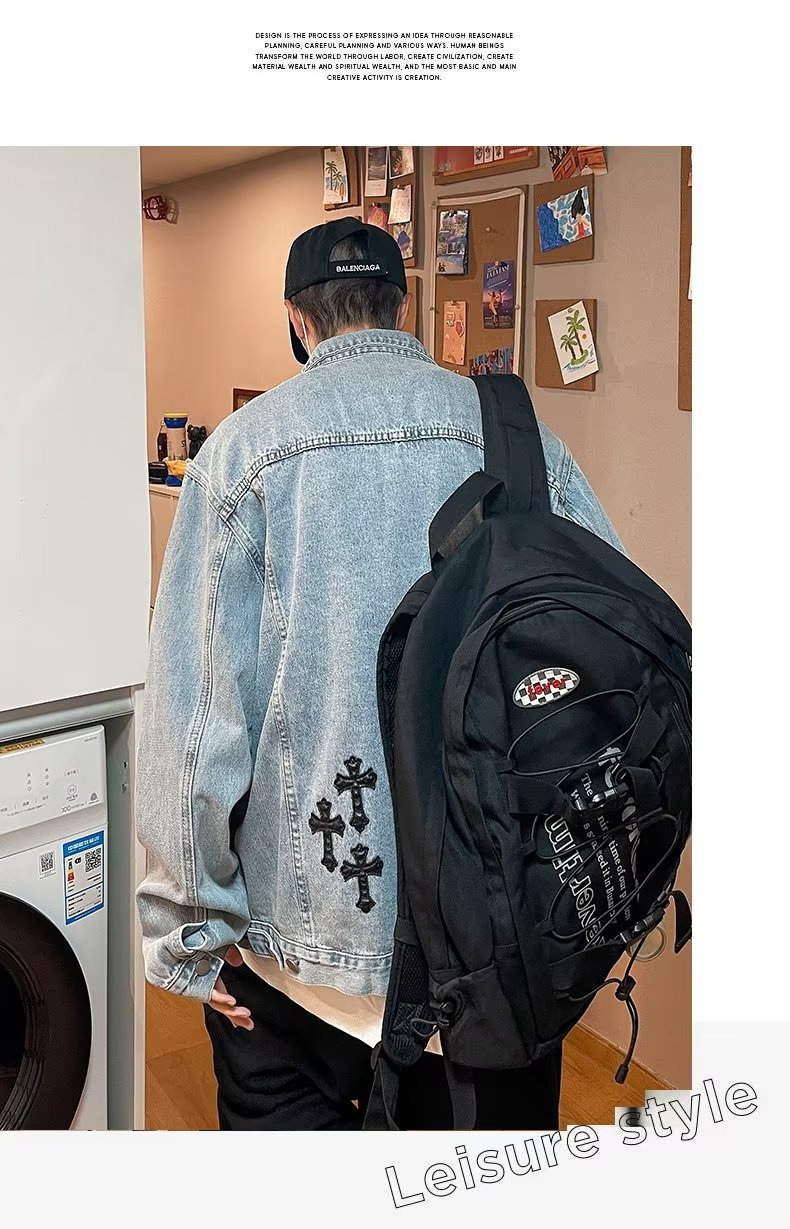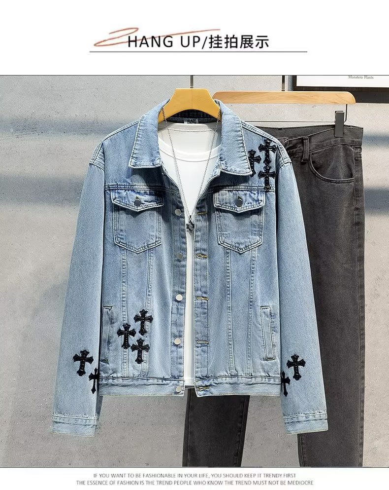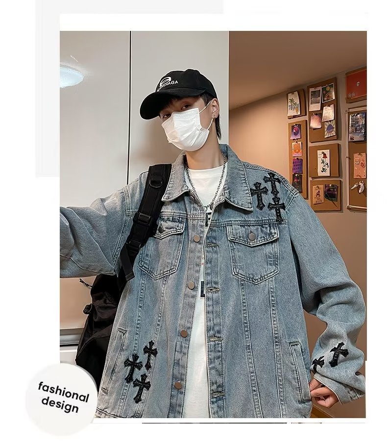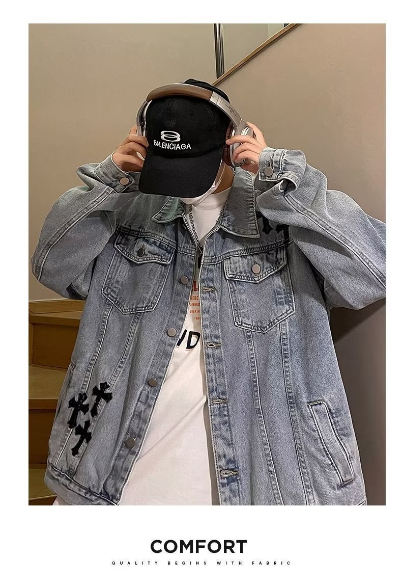 Otoño retro Denim coat hombres de American High Street Fashion Loose Denim chaqueta diseño sentido nicho Cross top