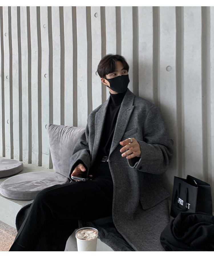 2023 invierno guapo espesado abrigo de lana de los Hombres estilo coreano gota-hombro abrigo de lana elegante capa casual FK800