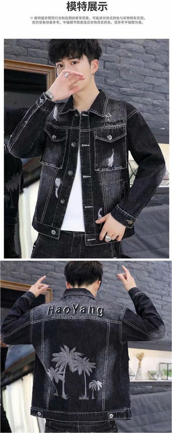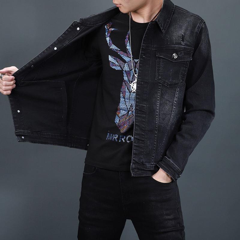 Abrigo de mezclilla de los hombres primavera y otoño nuevo estilo coreano slim fit casual ropa de trabajo chaqueta de moda solapa capa superior mapache