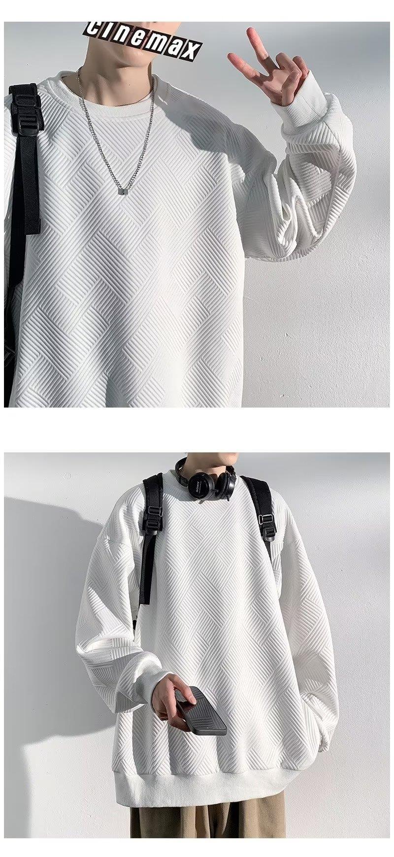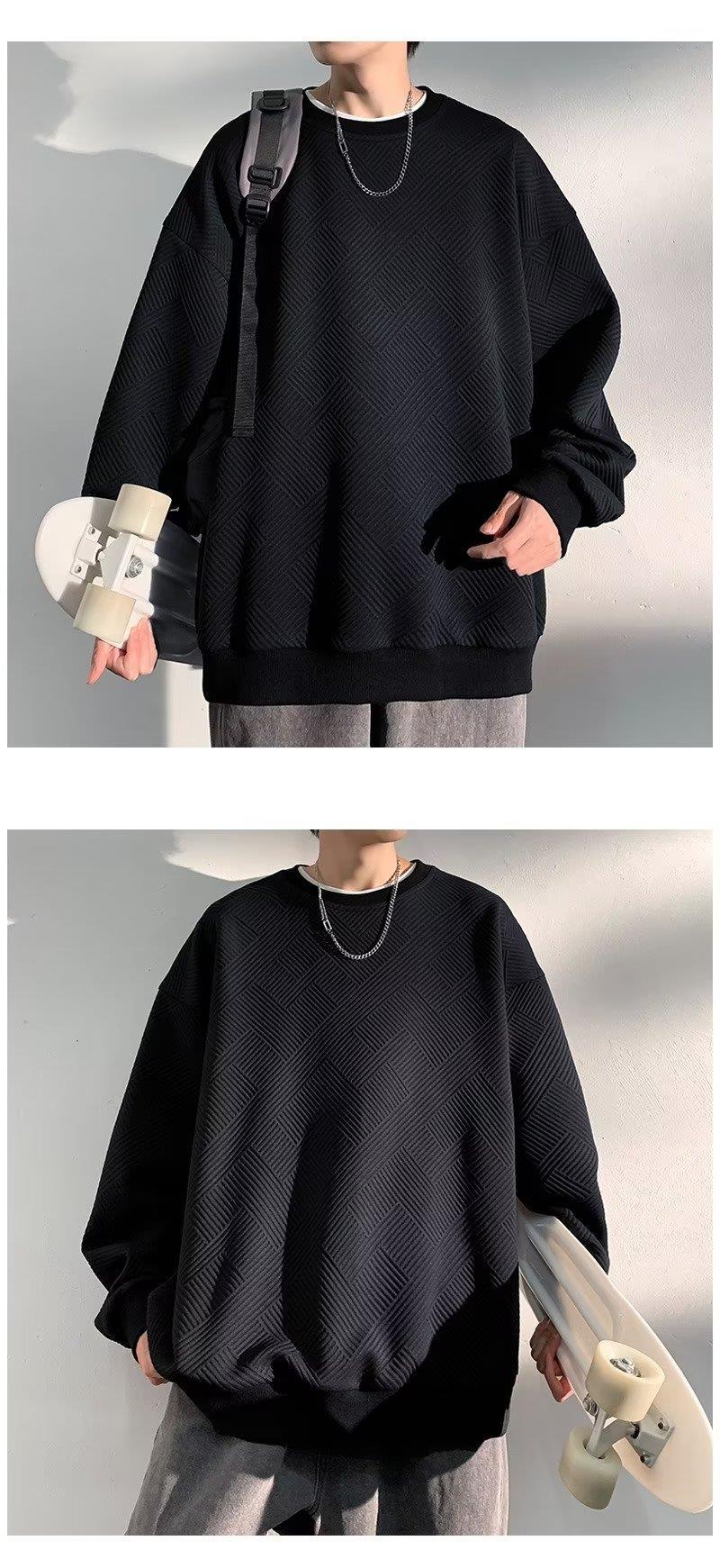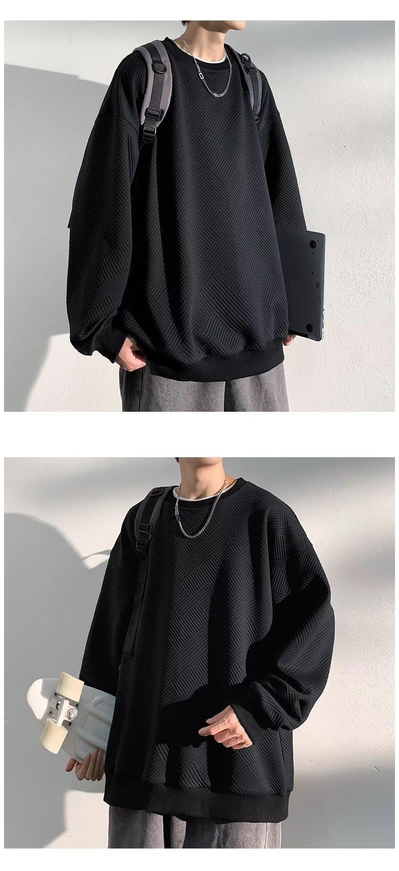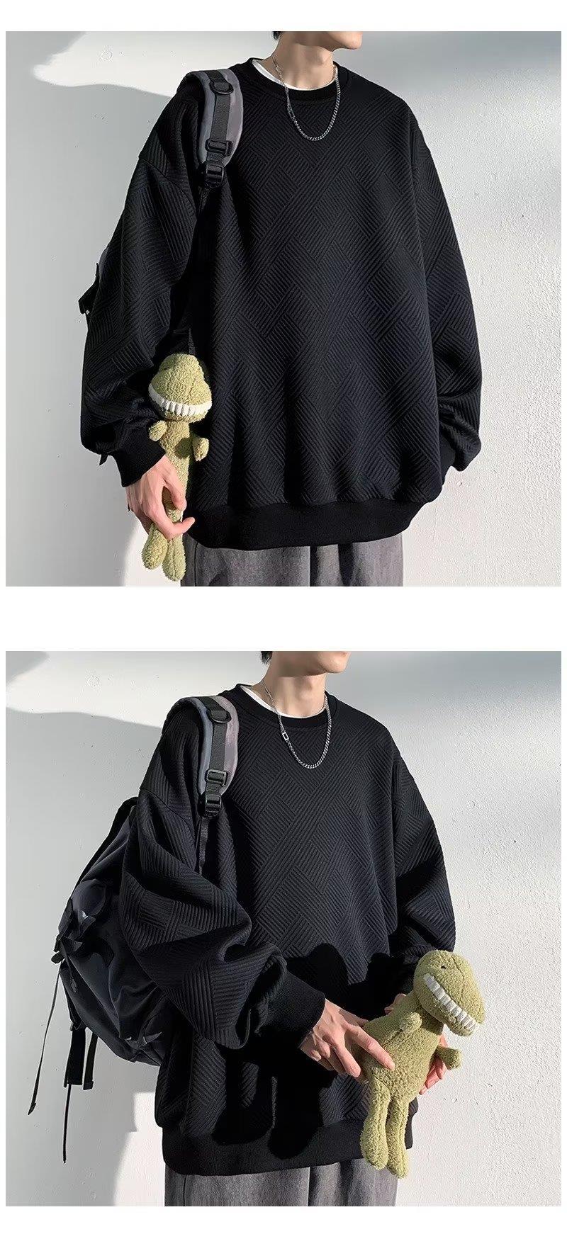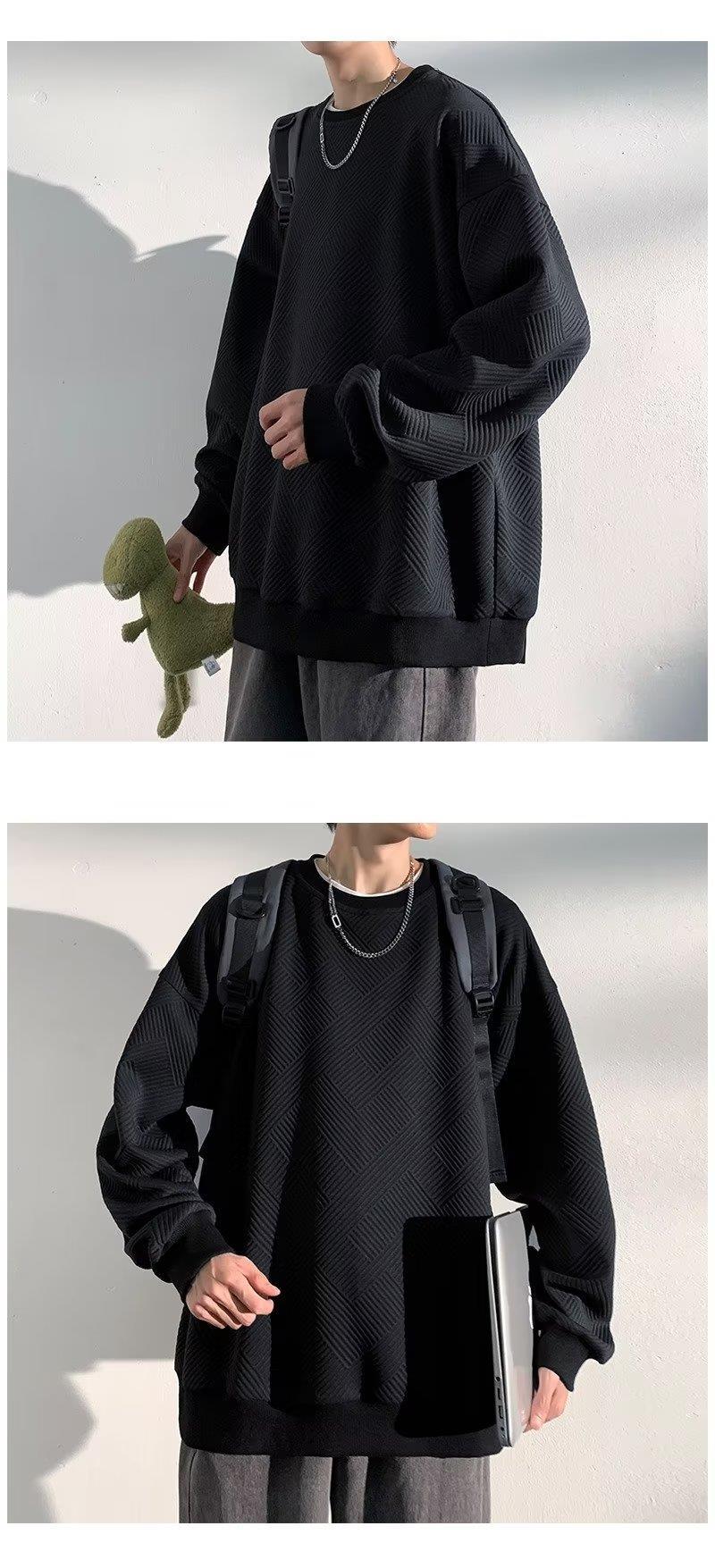 Pesado estilo americano patrón flotante suéter de los hombres de cuello redondo otoño marca de moda suelta más tamaño con capucha pareja ropa de moda camisa de fondo