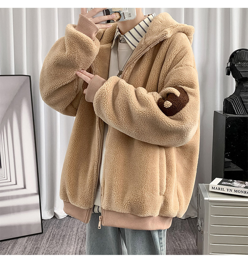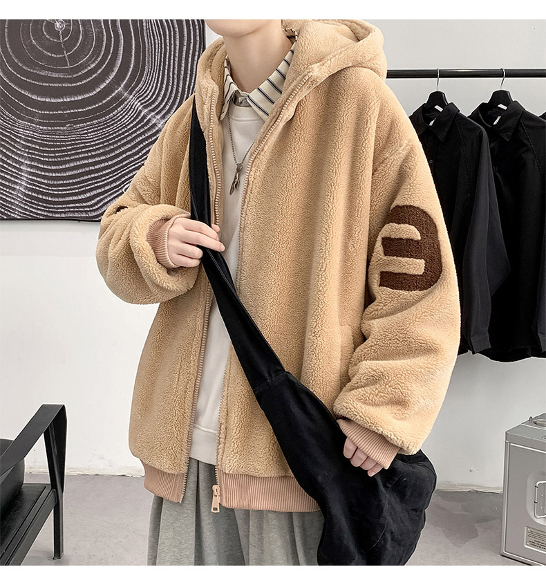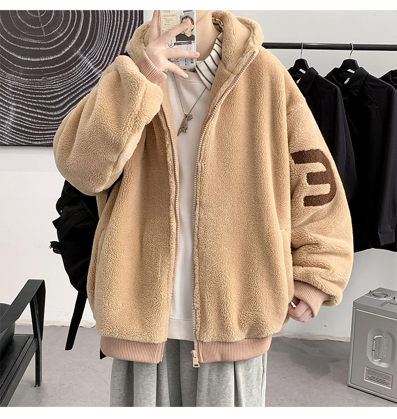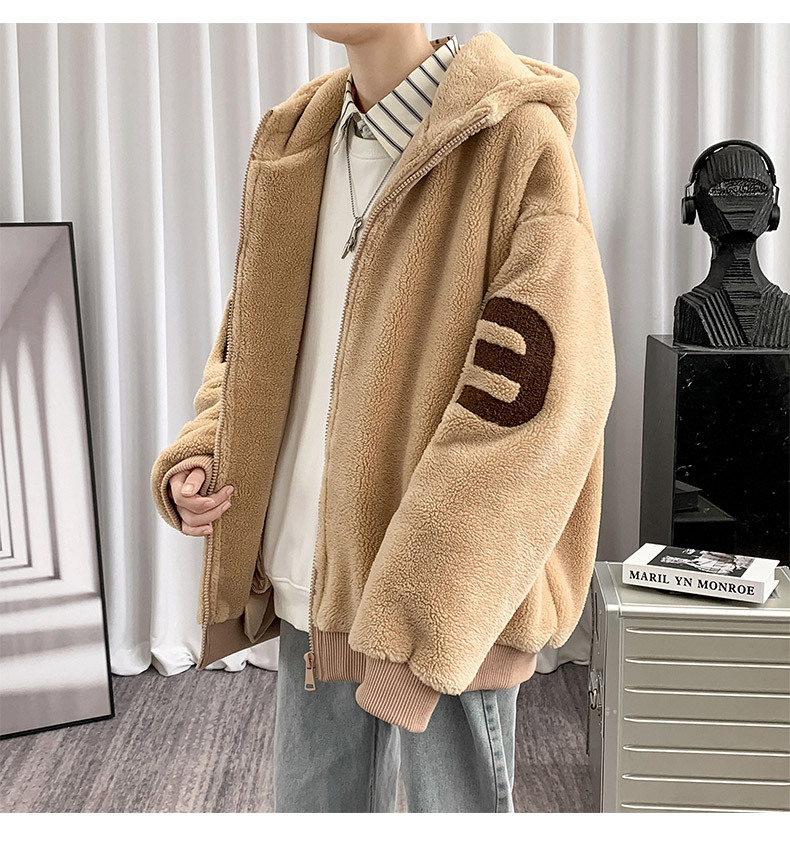 Ropa de invierno con forro polar engrosado abrigo de algodón acolchado para adolescentes cálido abrigo de lana de cordero para hombres